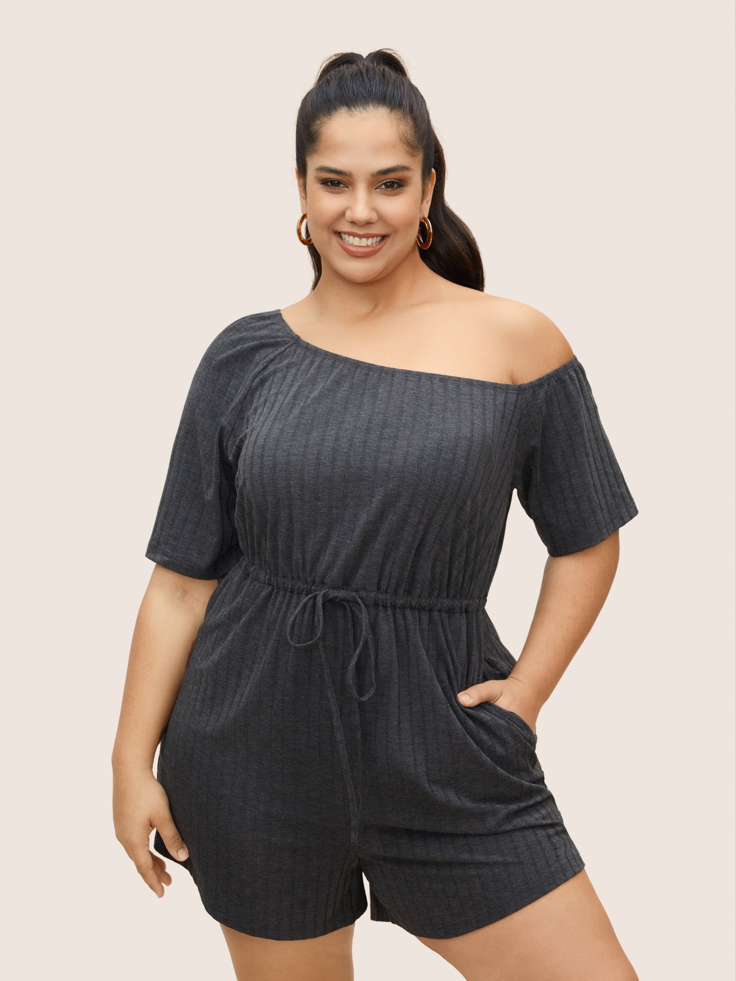 One Shoulder Drawstring Pit Strip Jumpsuit