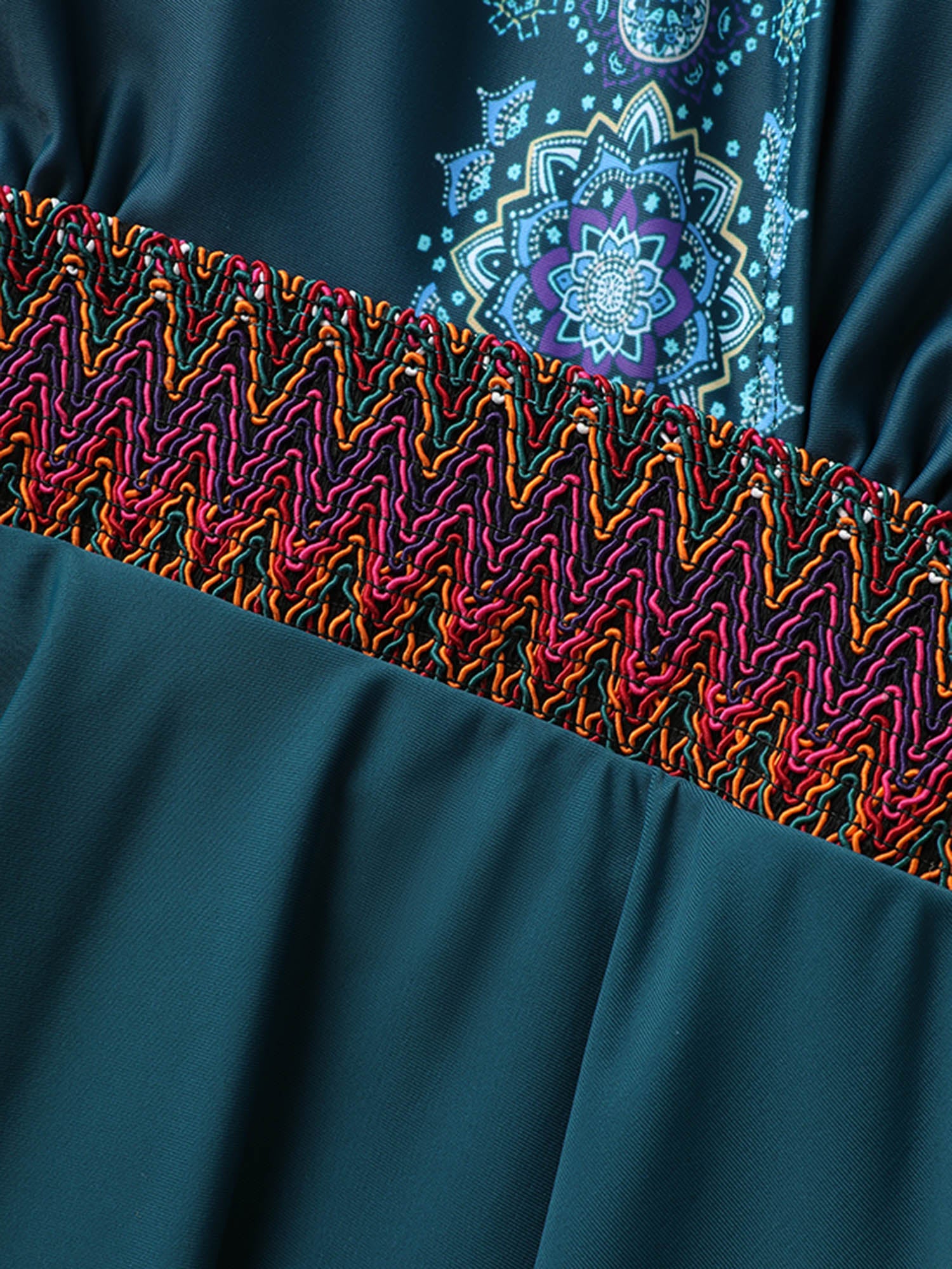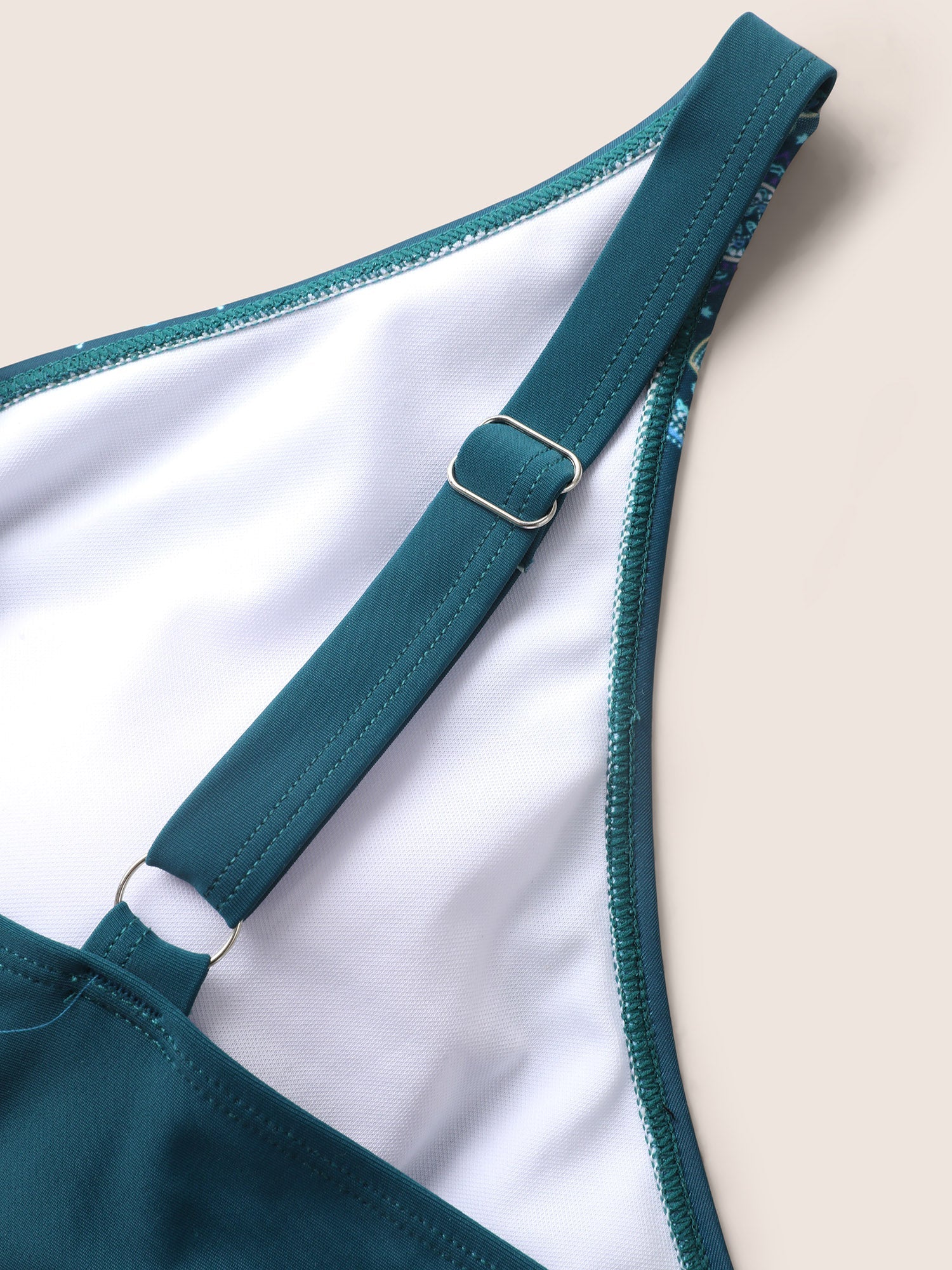 Overlap Collar Bandana Print Contrast Webbing Swim Dress