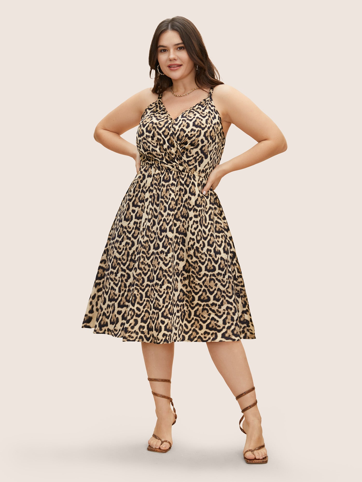 Overlap Collar Leopard Print Cami Dress