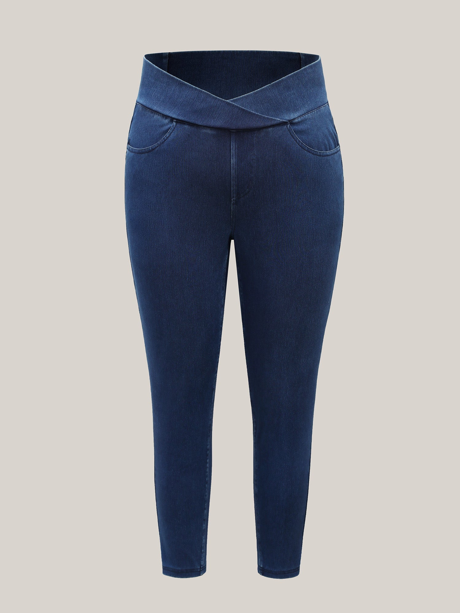 Overlap Hem Yoga Stretch Skinny Knit Jeans