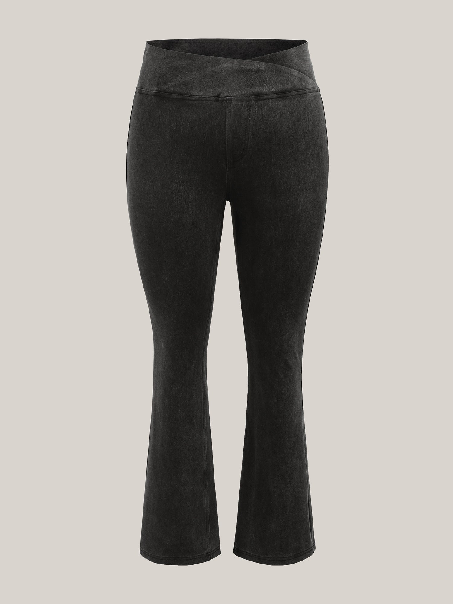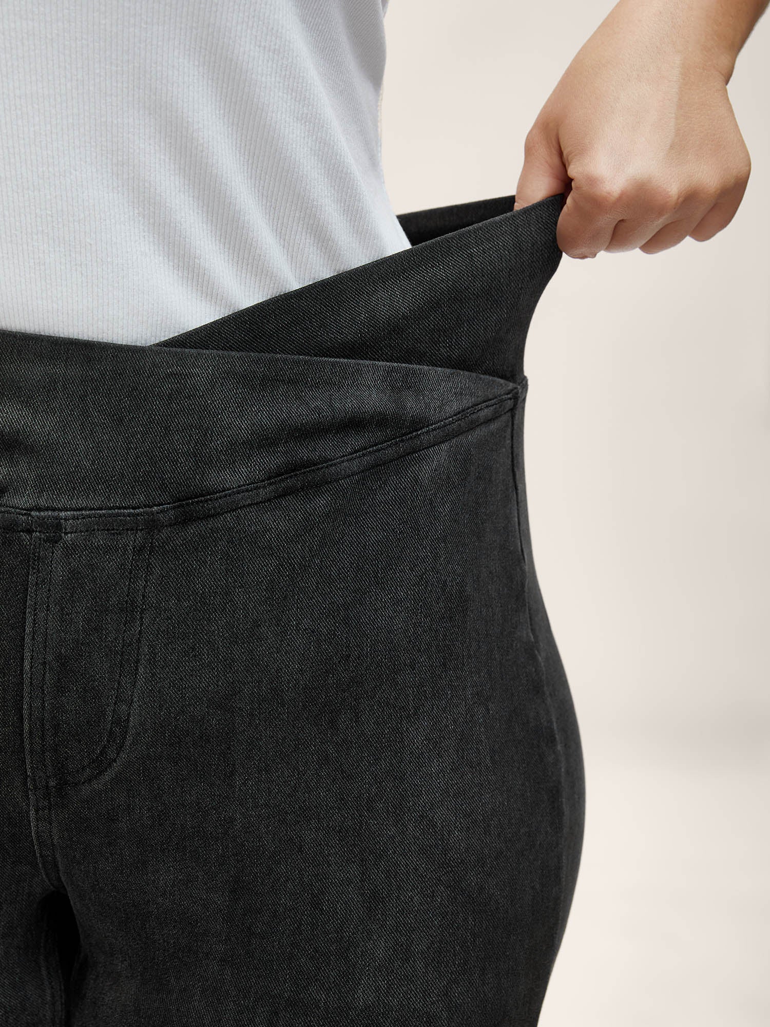 Overlap Waist Stretchy Knit Bootcut Jeans