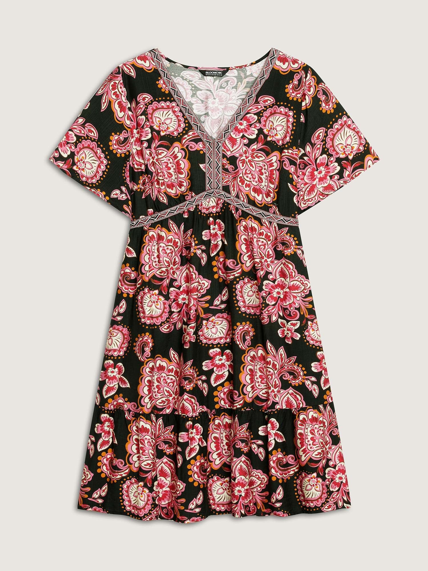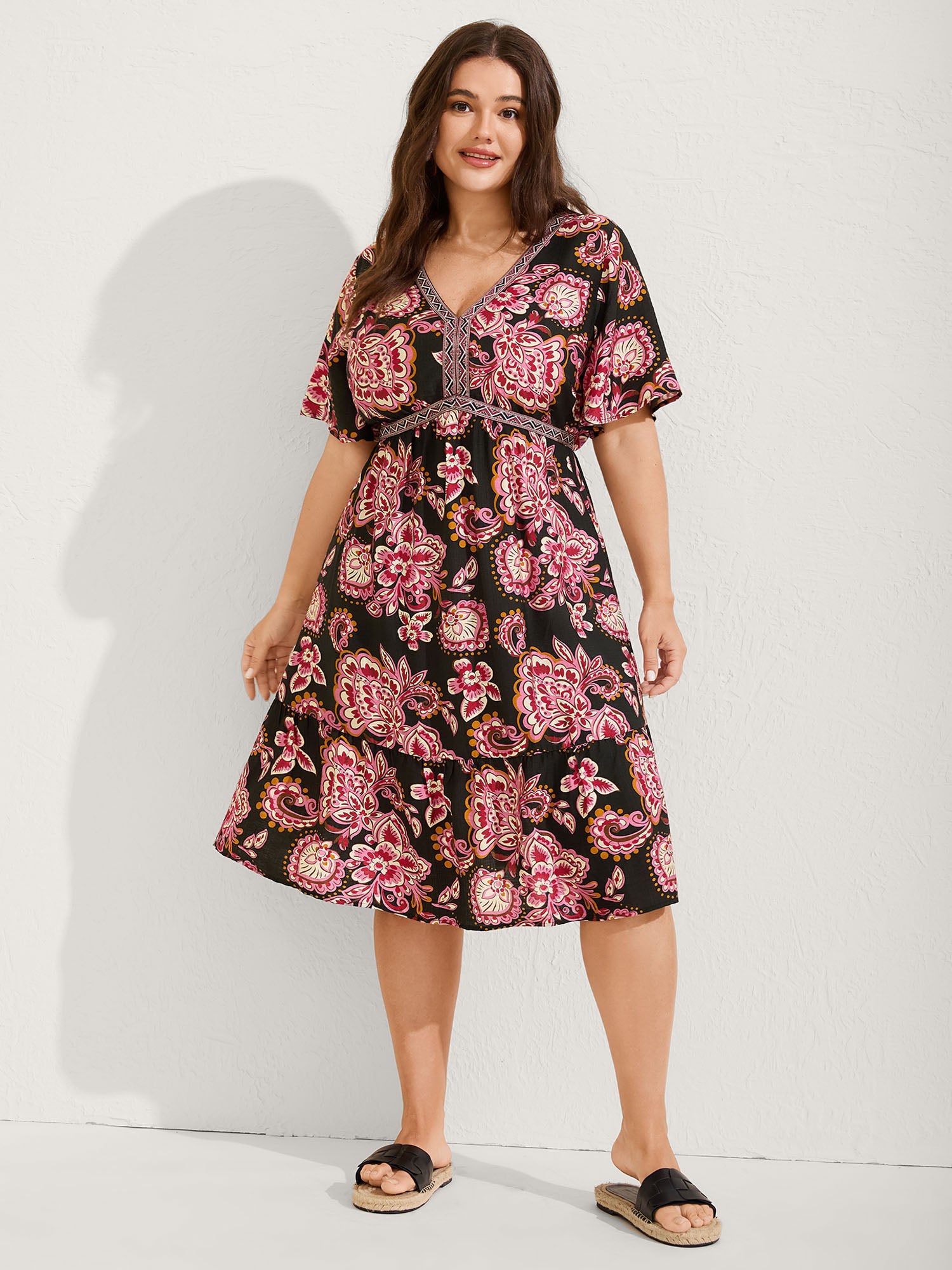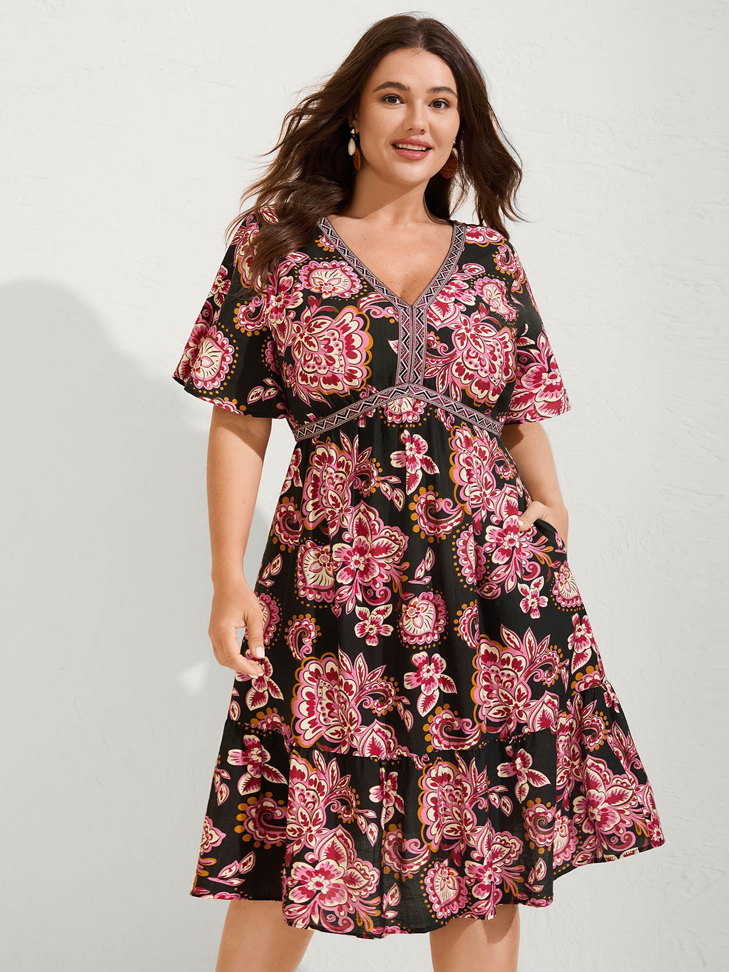 Paisley Print Stretchy Waist Pockets Midi Dress