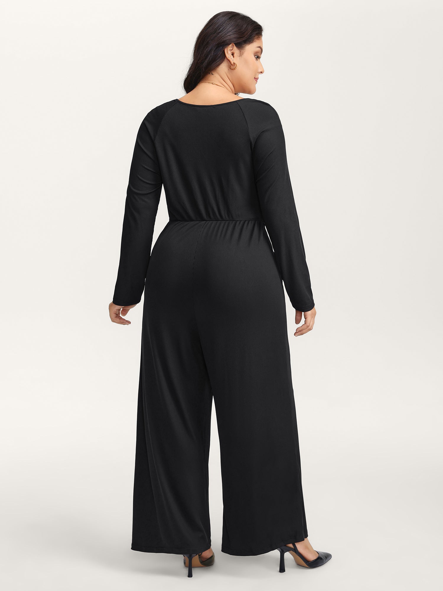 Pit Strip Textured Stretchy Raglan Sleeve Jumpsuit