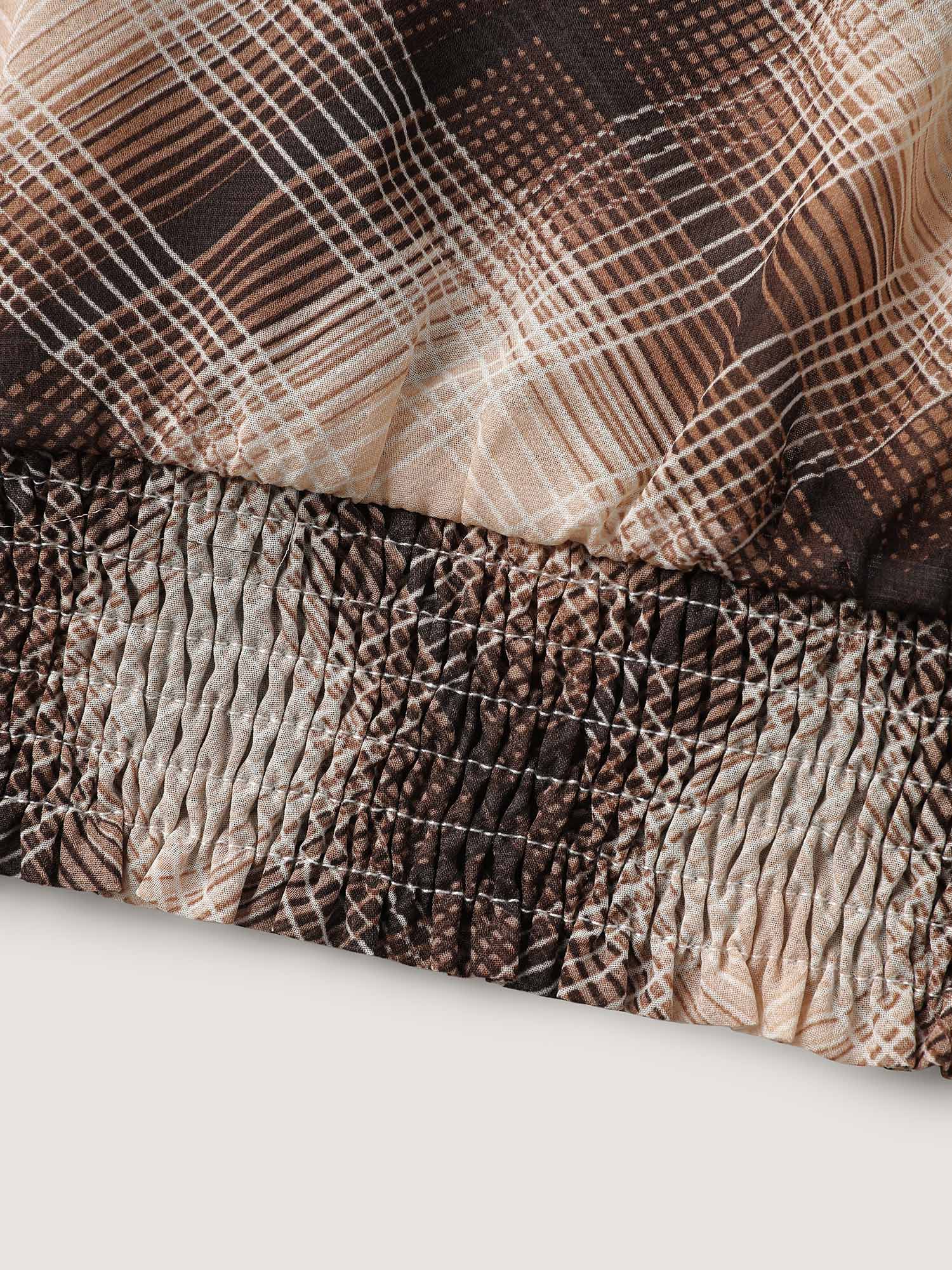 Plaid Half-Button Placket Semi-Sheer Blouse