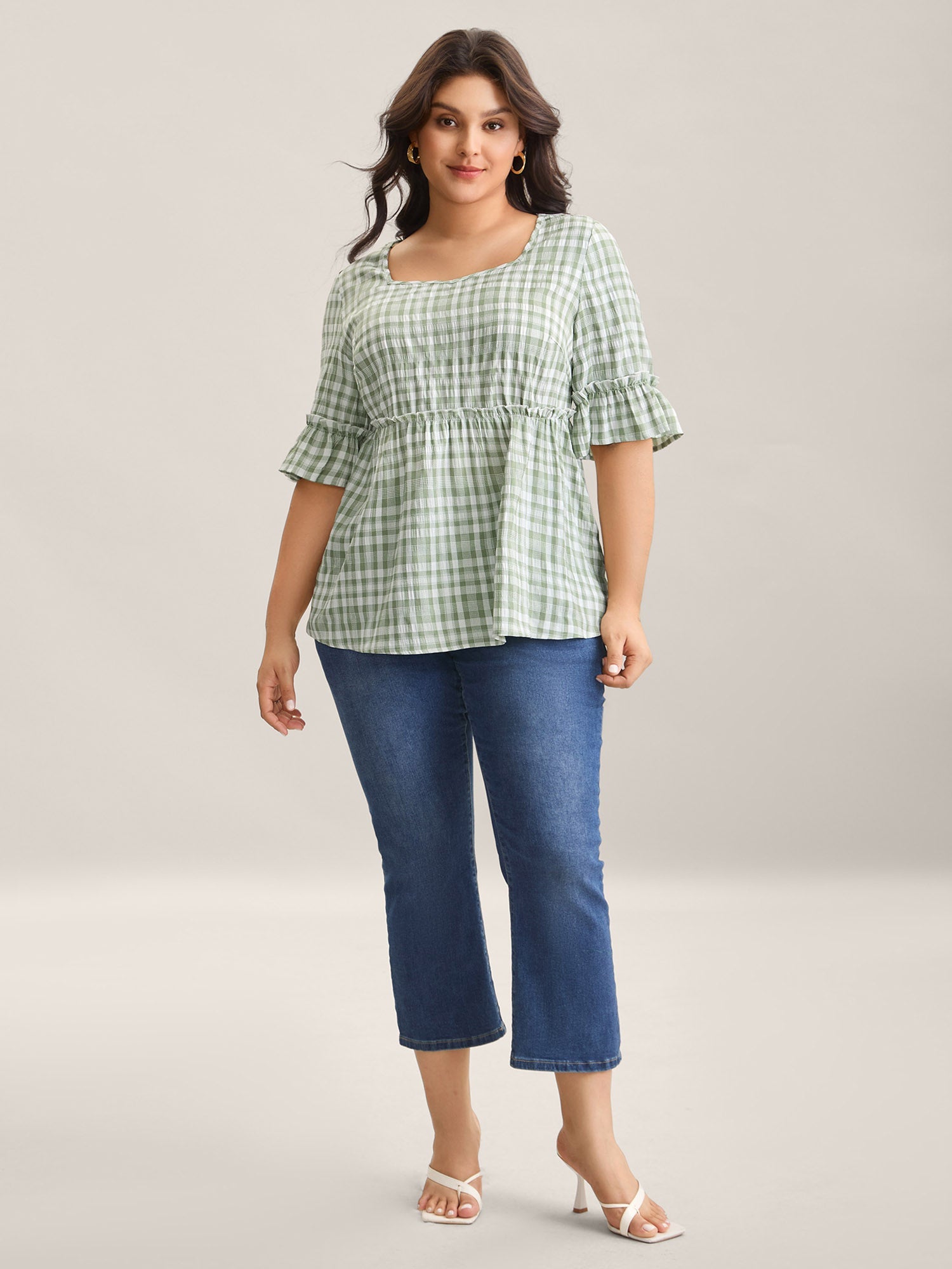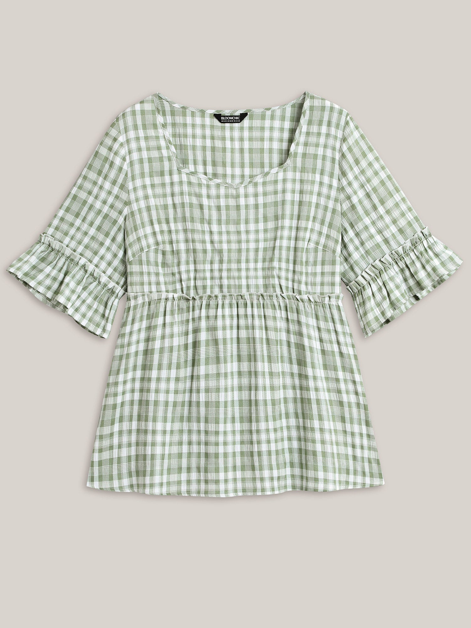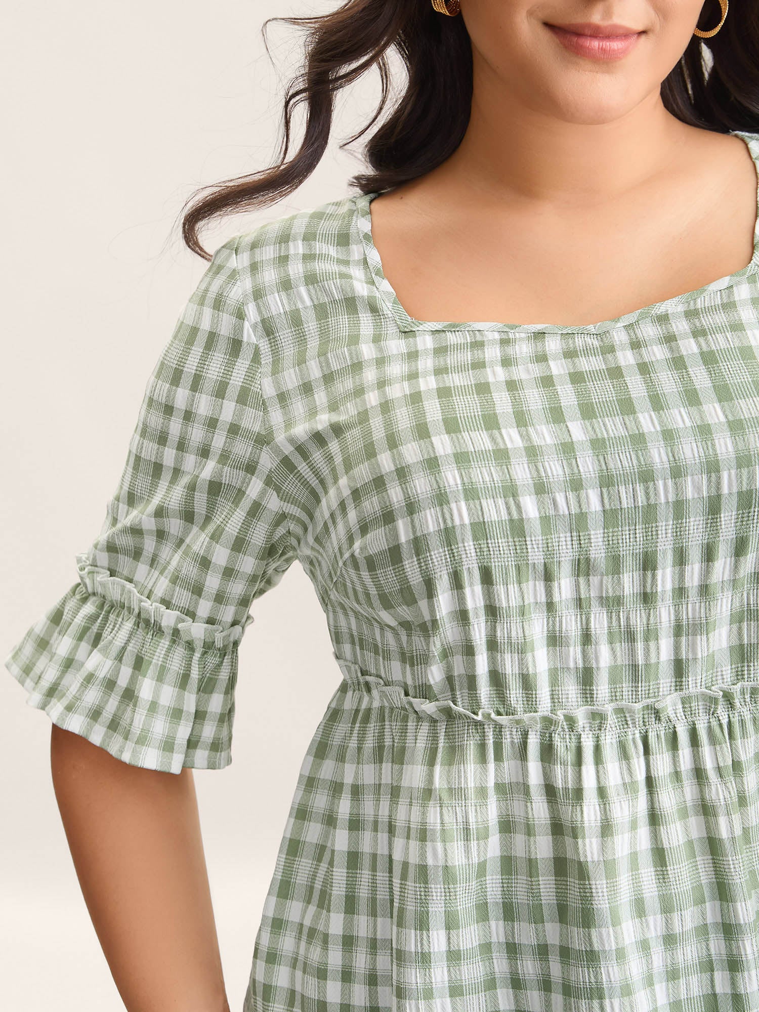 Plaid Pattern Ruffled Sleeve Babydoll Top