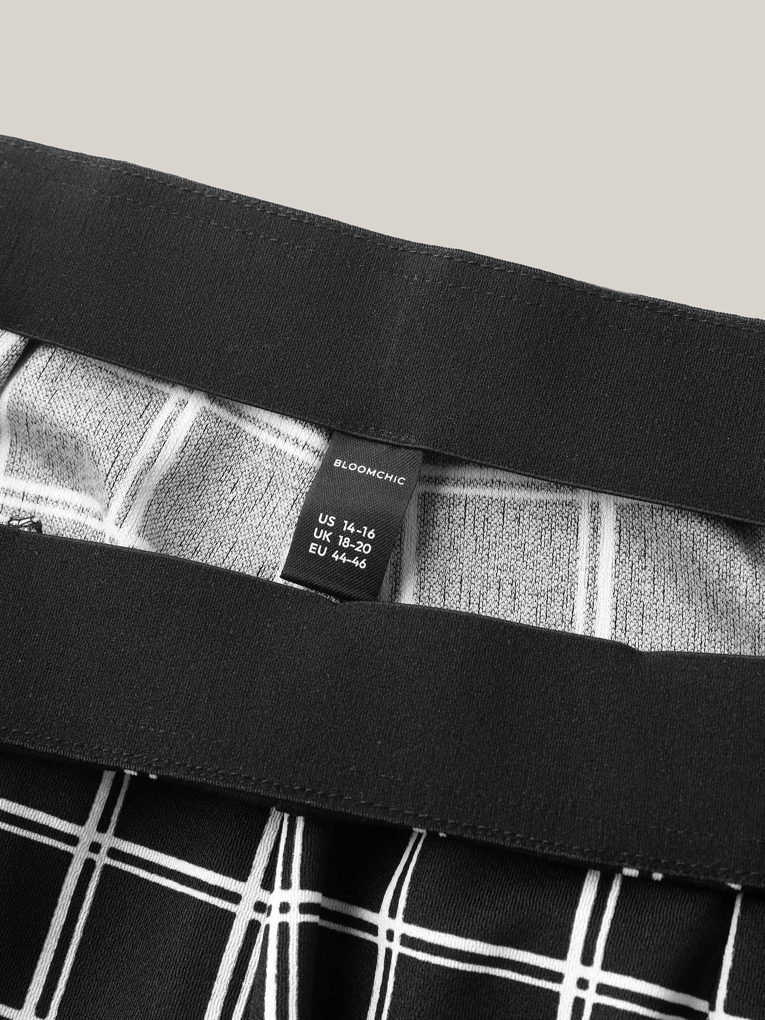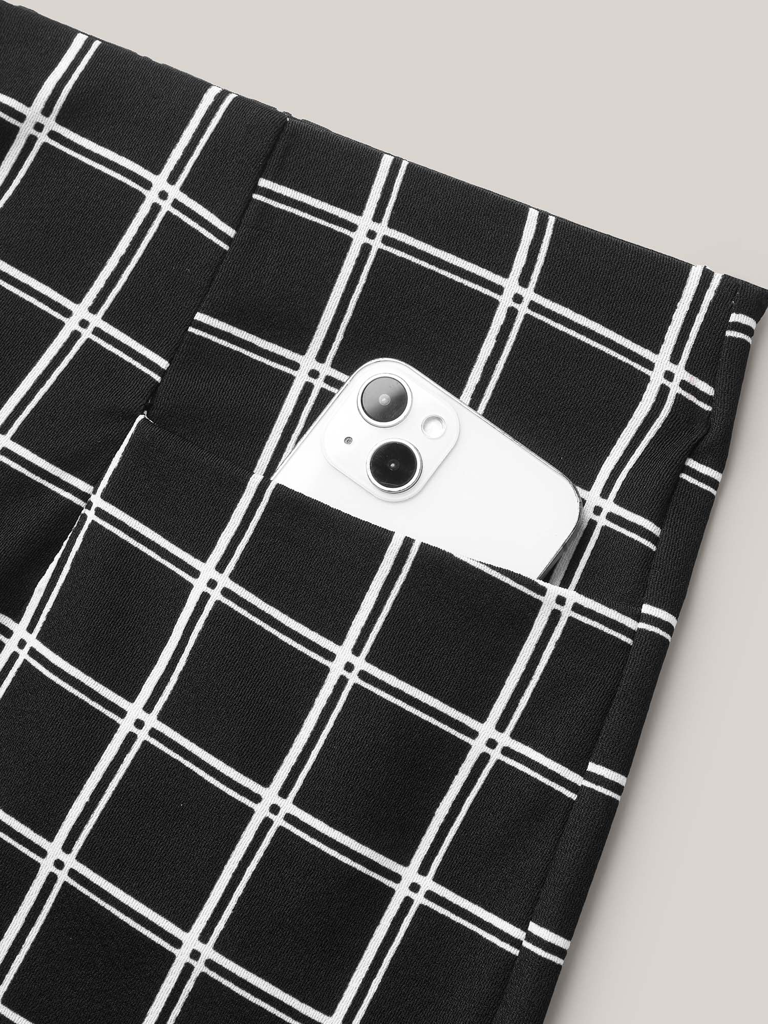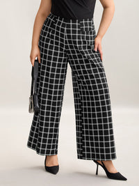 Plaid Pattern Stretchy Waist Wide-Leg Pants
