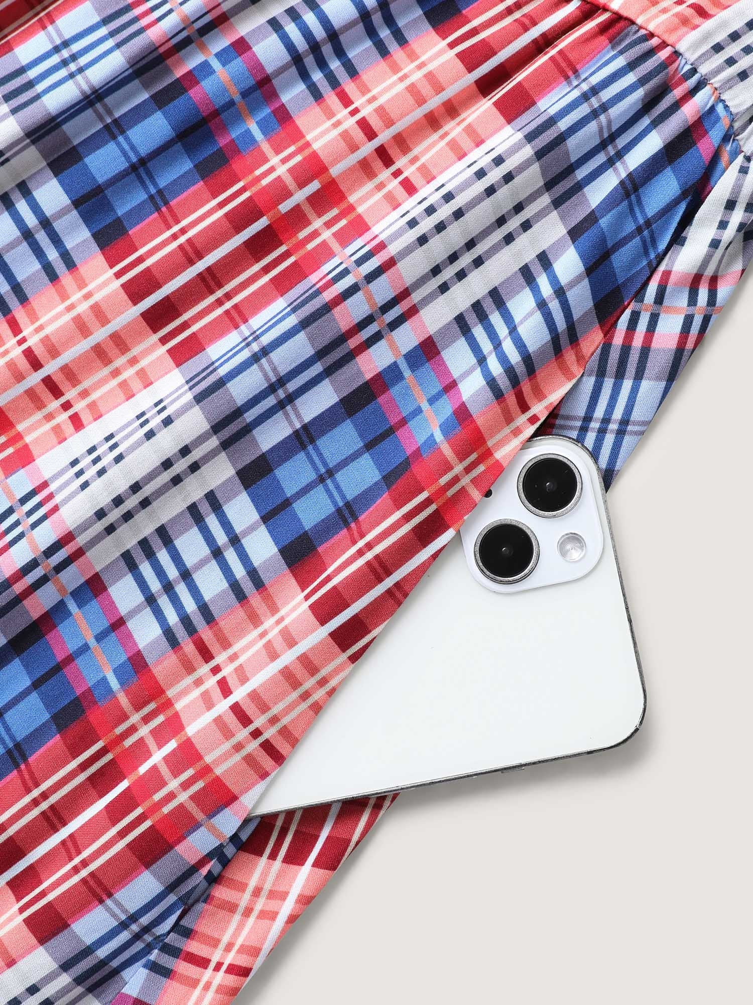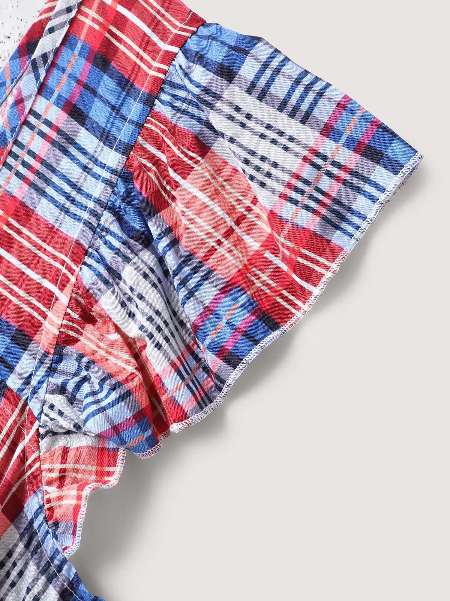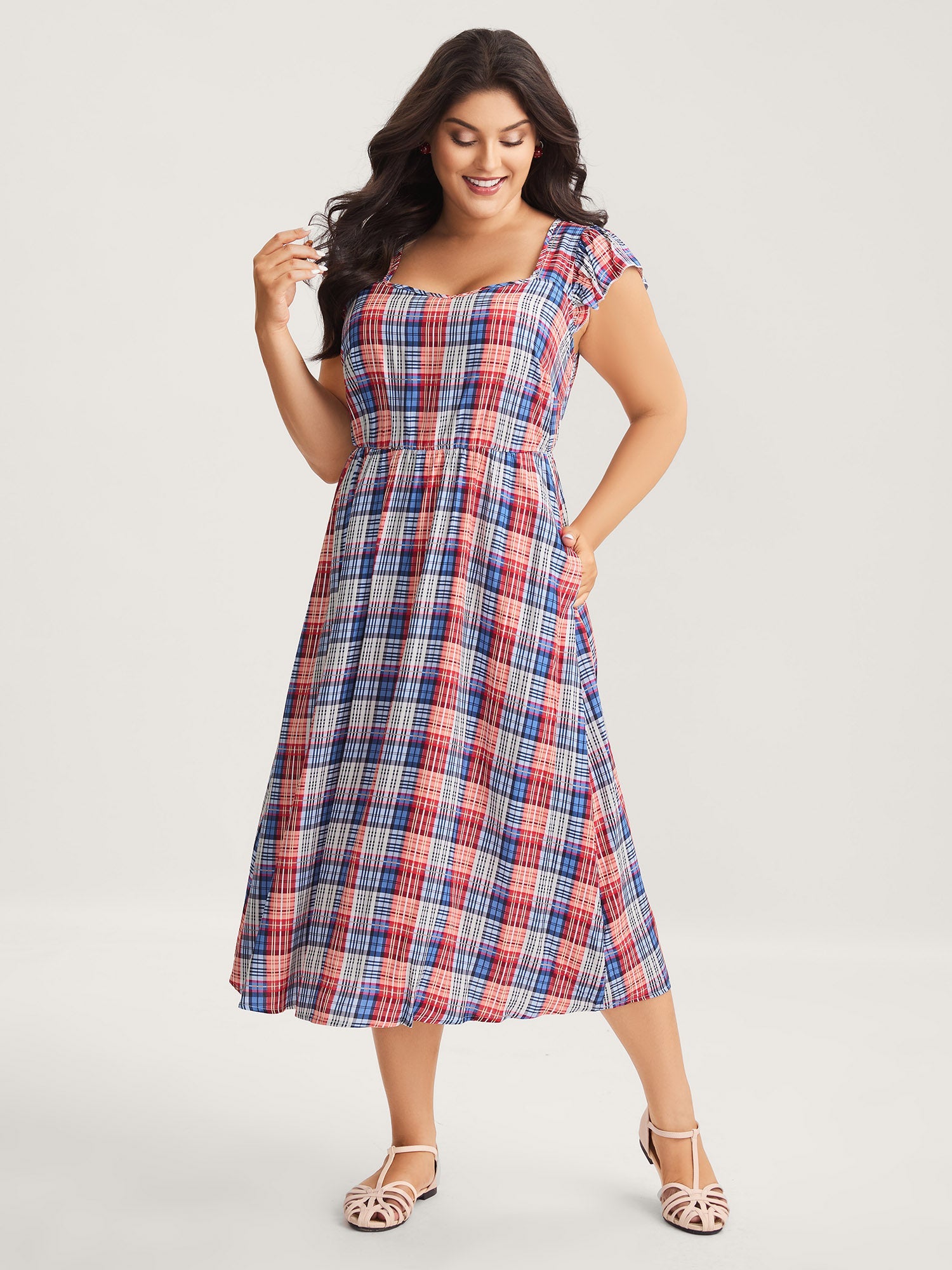 Plaid Print Flutter Sleeve Pockets Midi Dress
