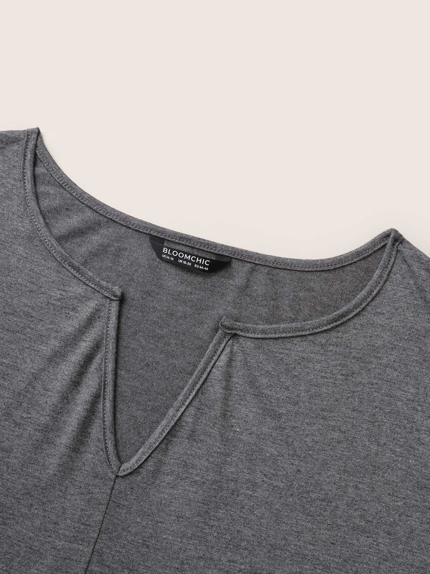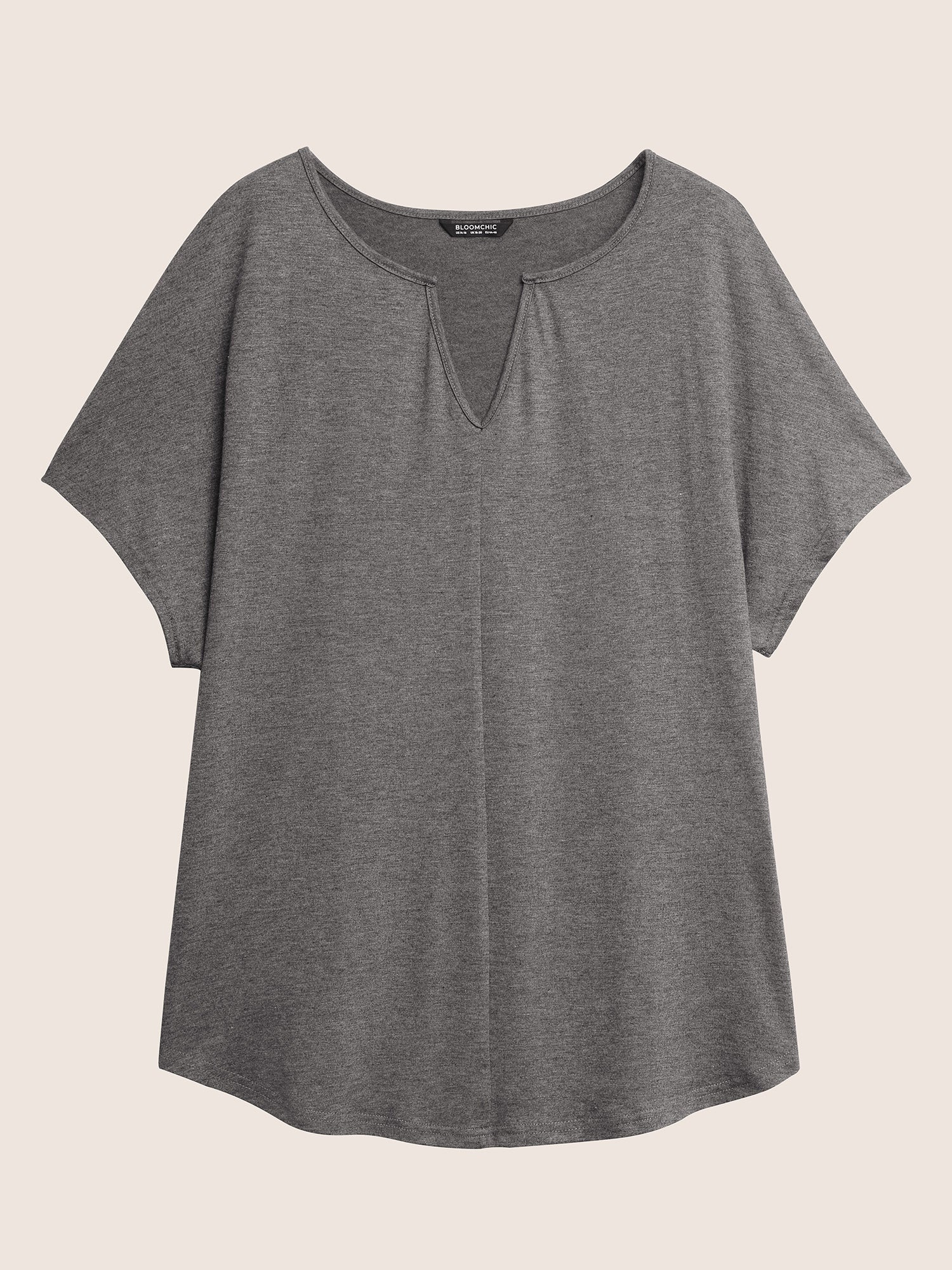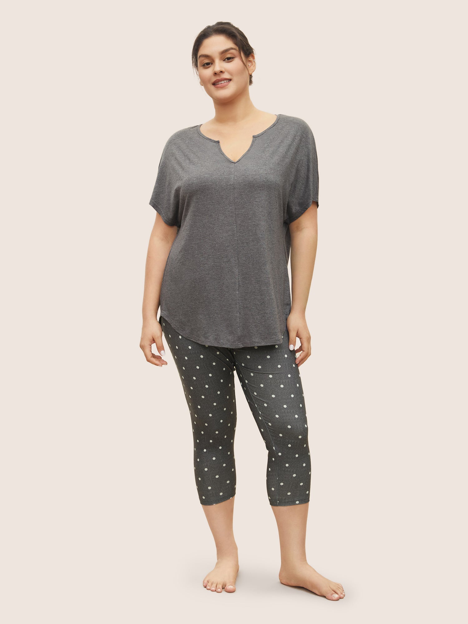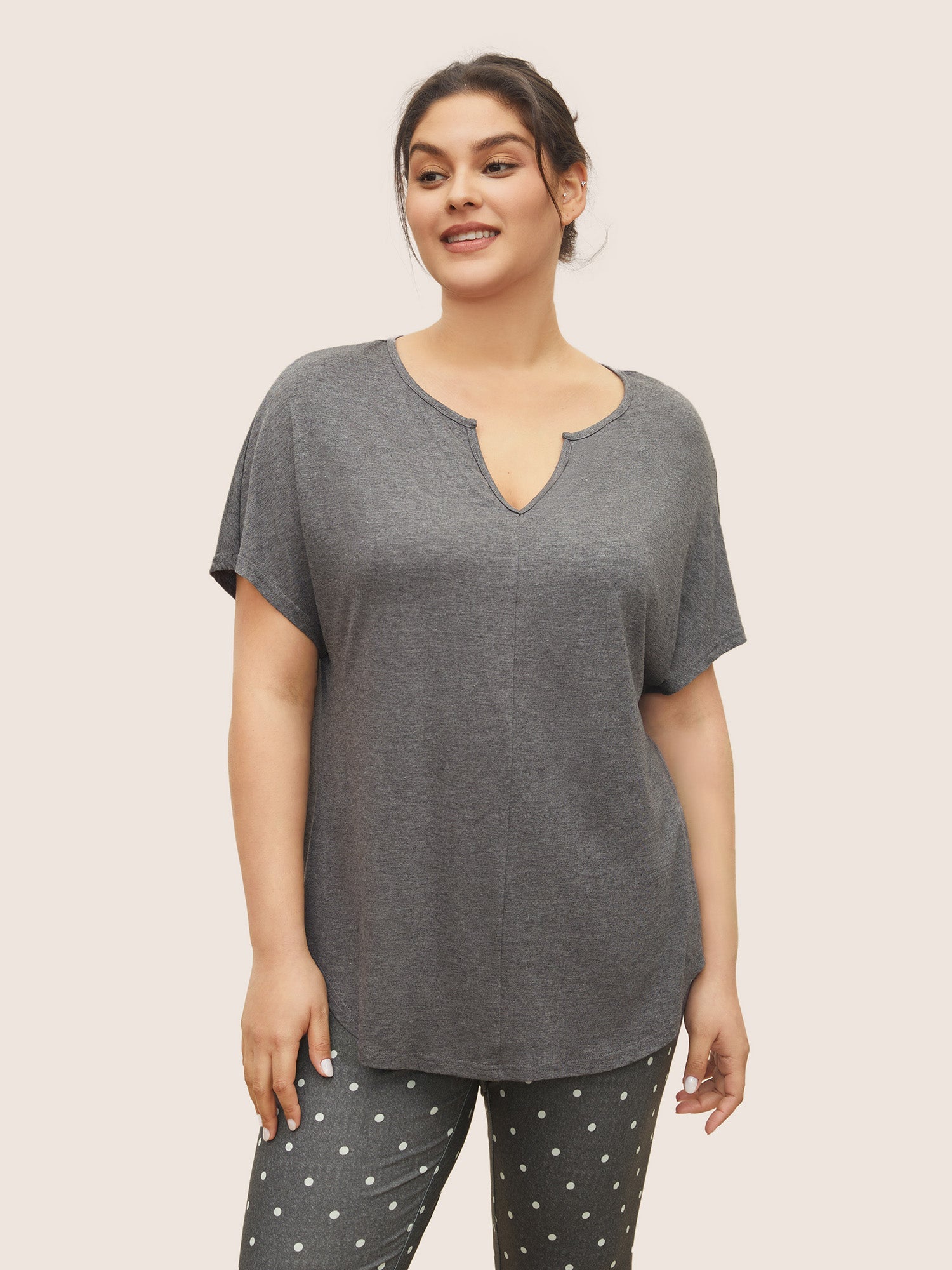 Plain Arc Hem Notched Dolman Sleeve Sleep Top