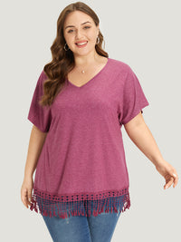Plain Fringe Trim Batwing Sleeve T-shirt