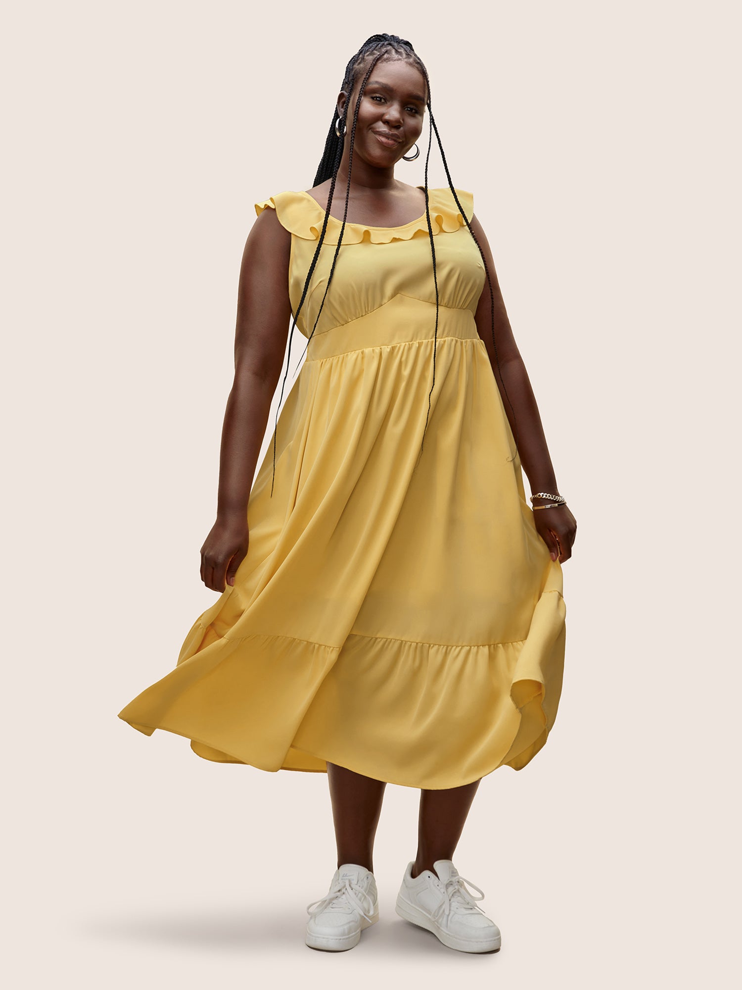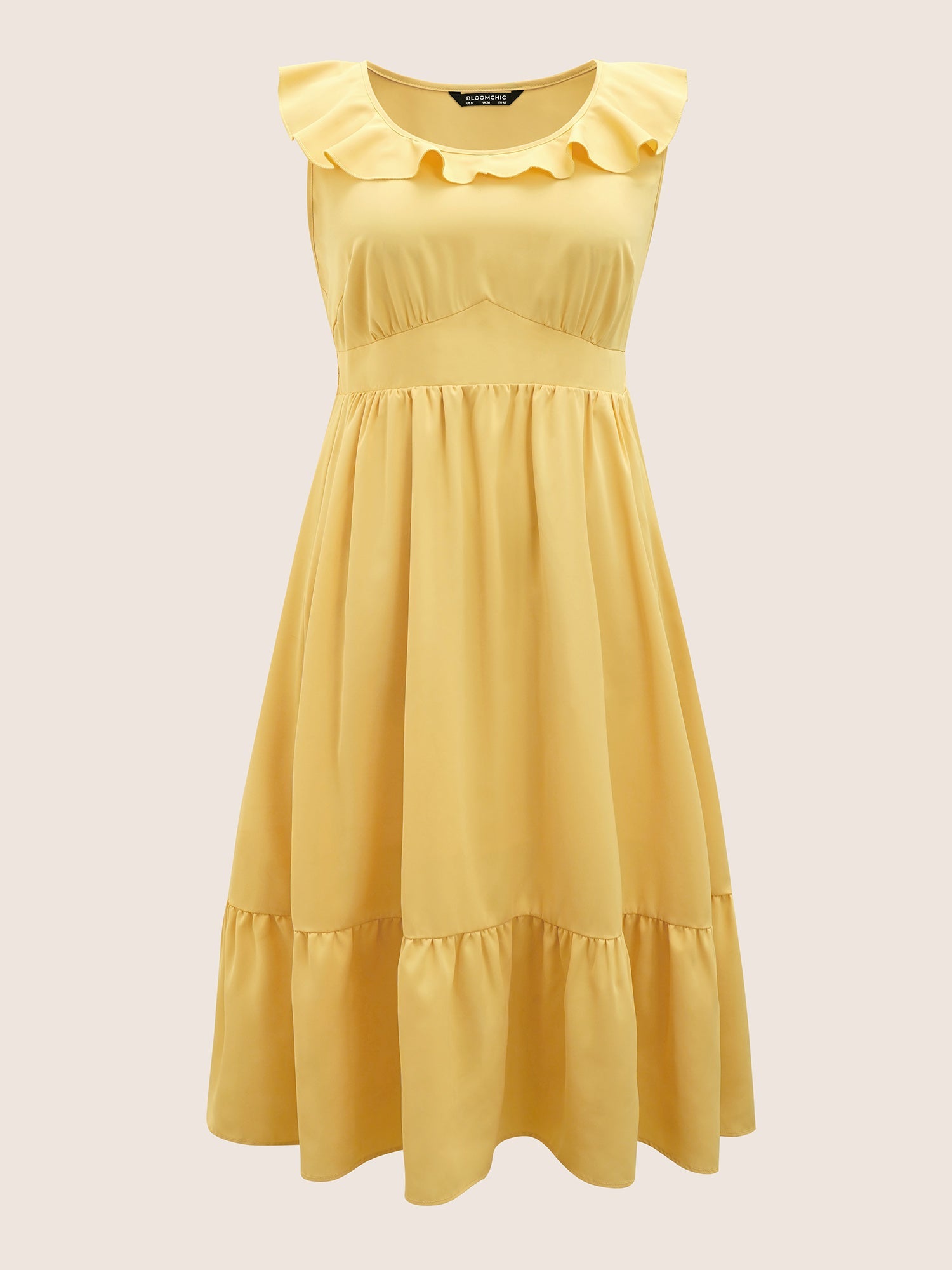 Plain Shirred Ruffle Trim Sleeveless Dress
