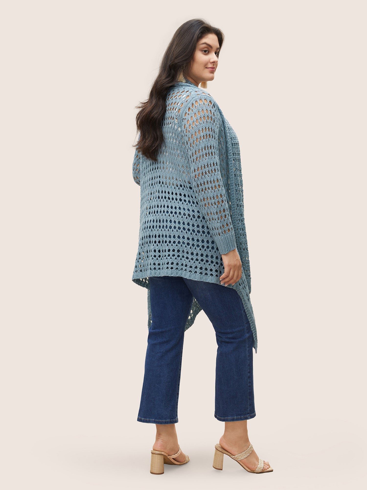 Plain Texture Cut Out Asymmetrical Hem Cardigan