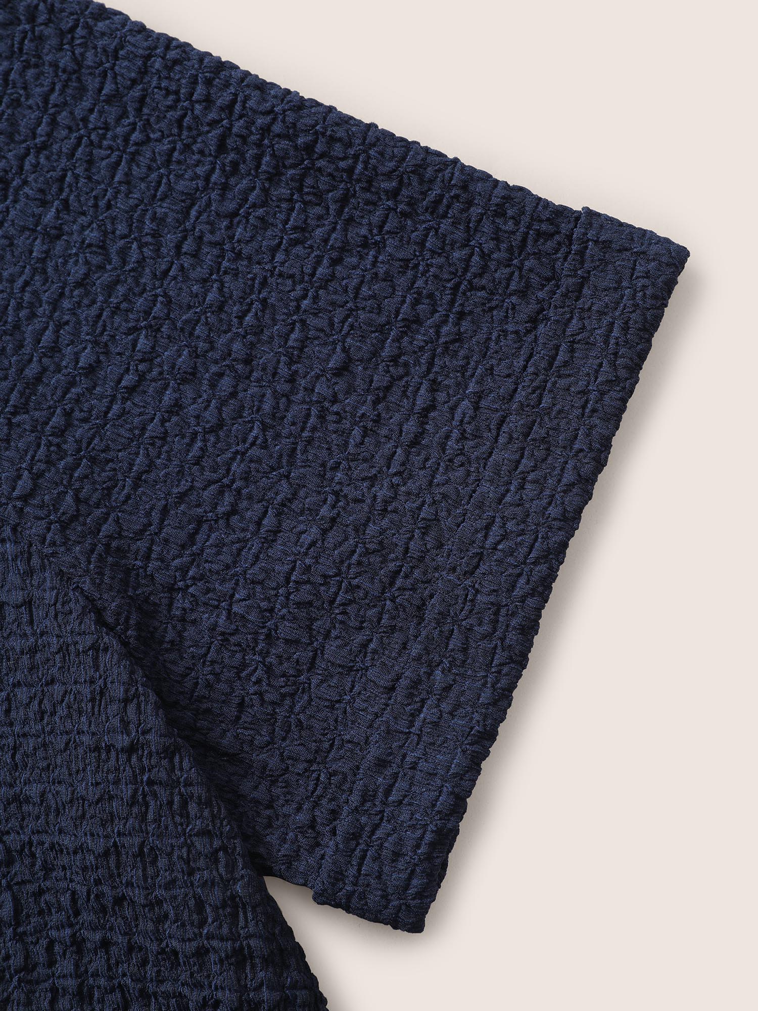 Plain Textured Crew Neck Cuffed Sleeve T-shirt