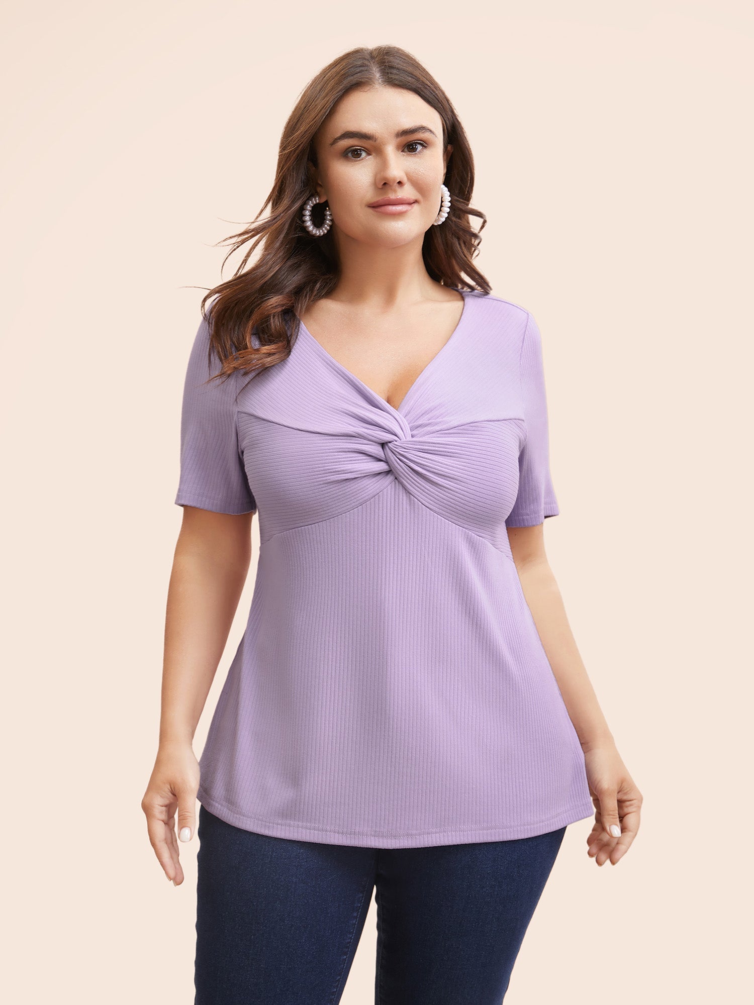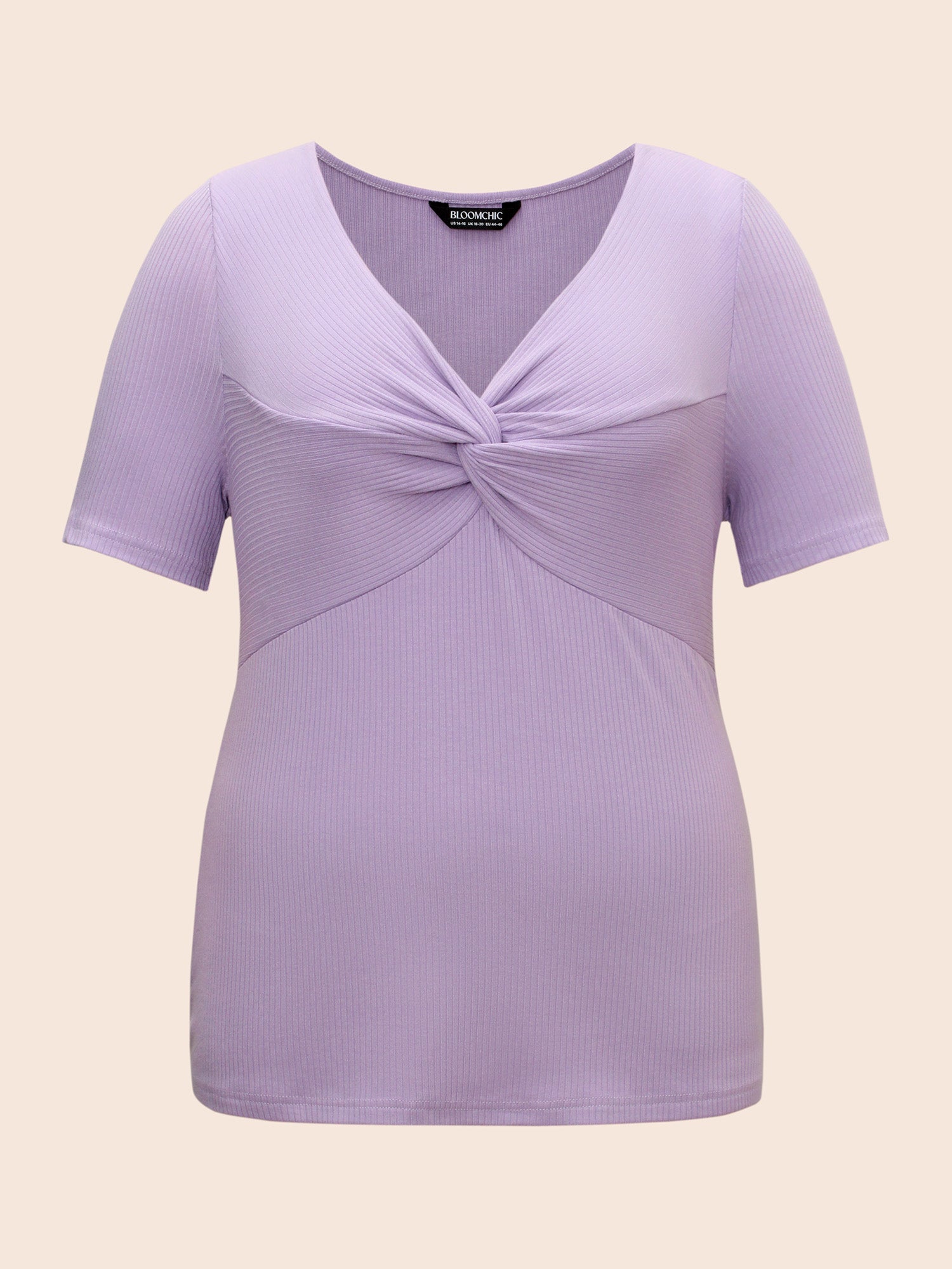 Plain Textured Rib Knit Twist Front T-shirt