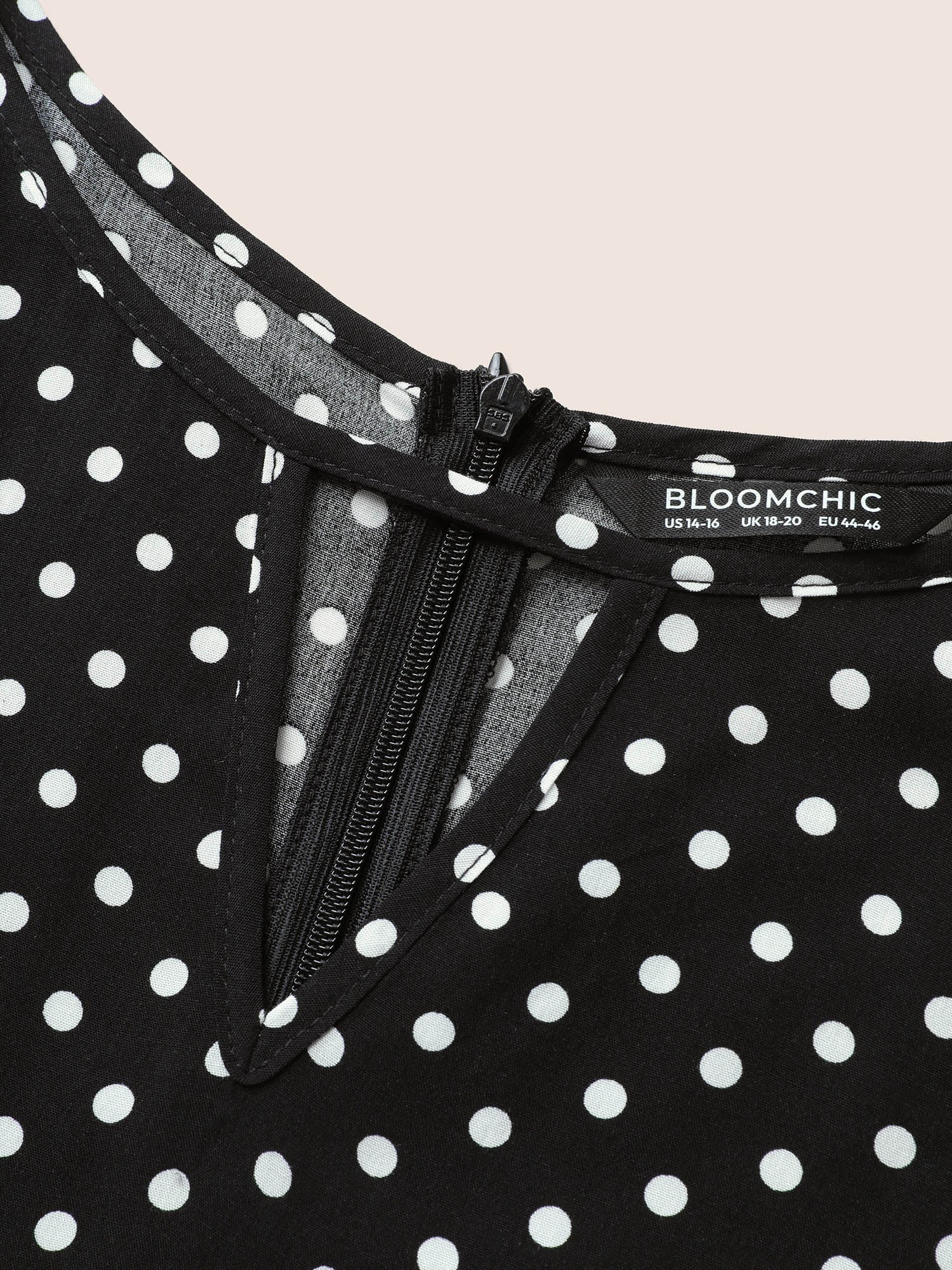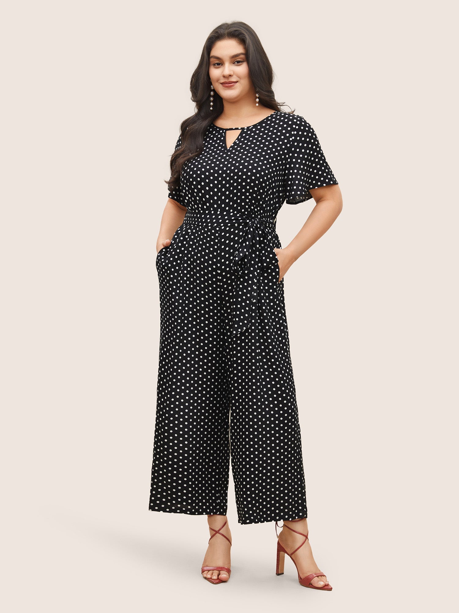 Polka Dot Cut Out Zipper Belted Jumpsuit