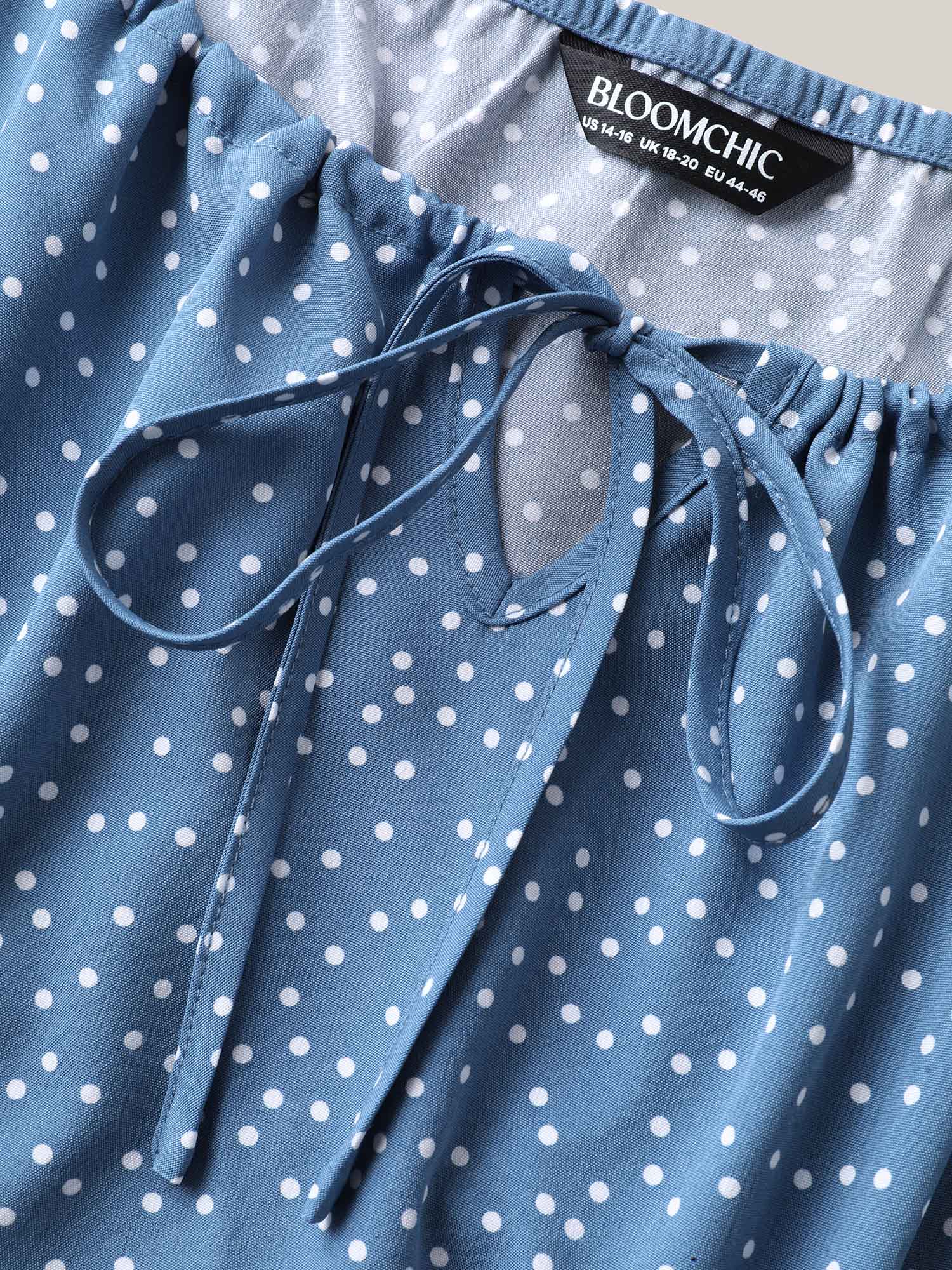 Polka Dots Layer Sleeves Keyhole Maxi Dress