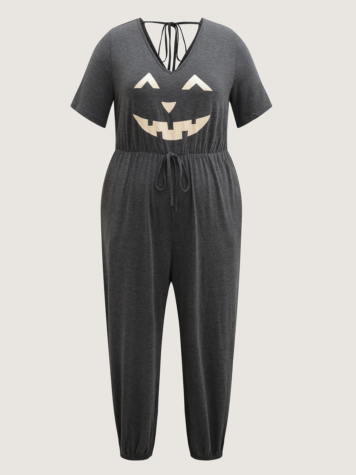 Pumpkin Carved Comfy Knit Lounge Jumpsuit