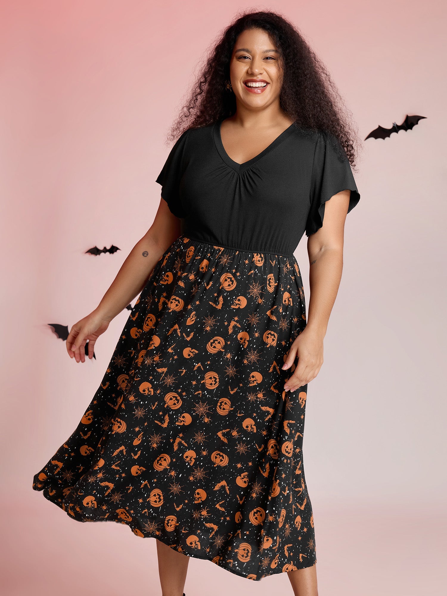 Pumpkin Contrast Print Pockets Maxi Dress