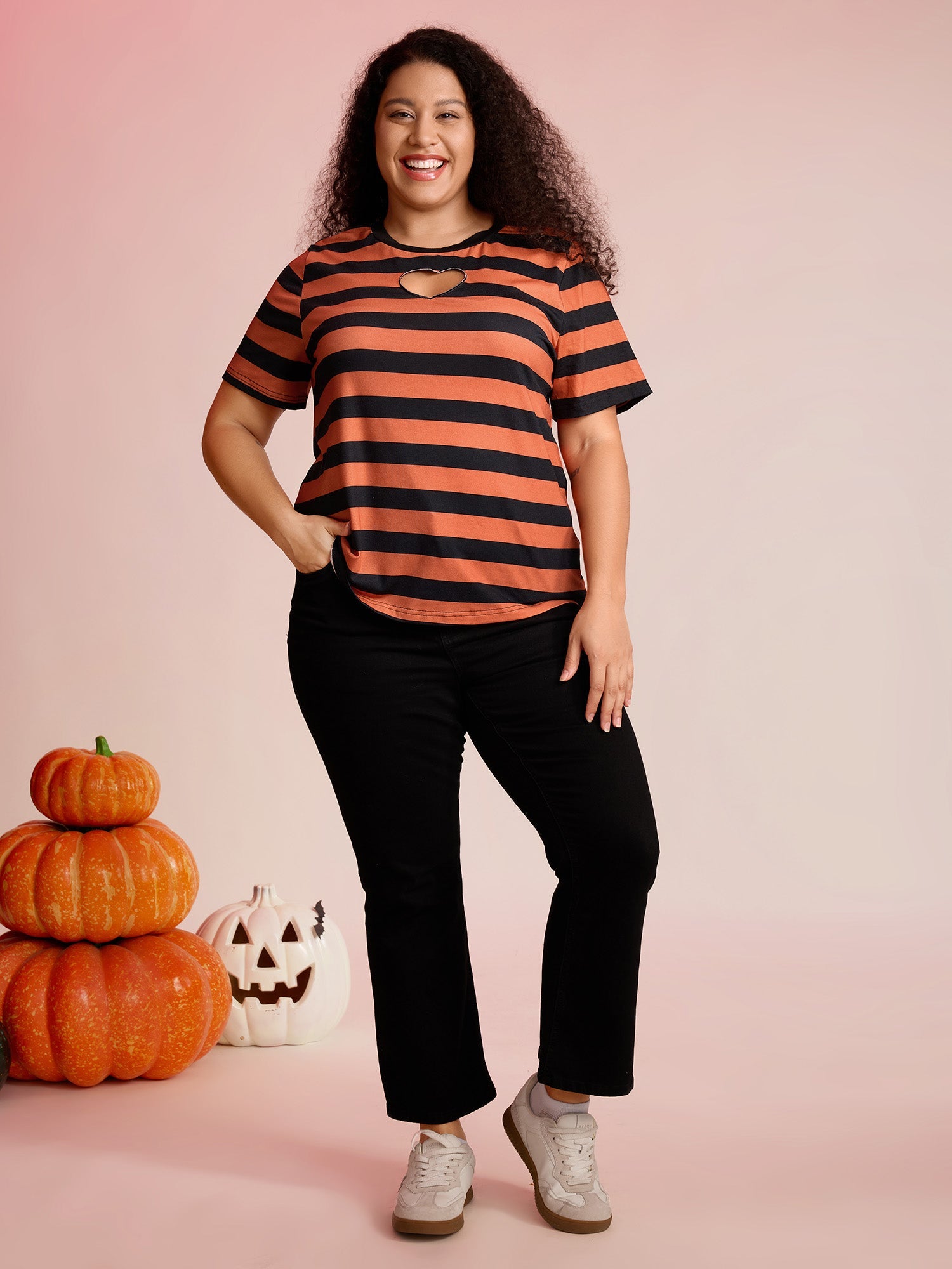 Pumpkin Patch Stripe Heart Cut-Out T-Shirt