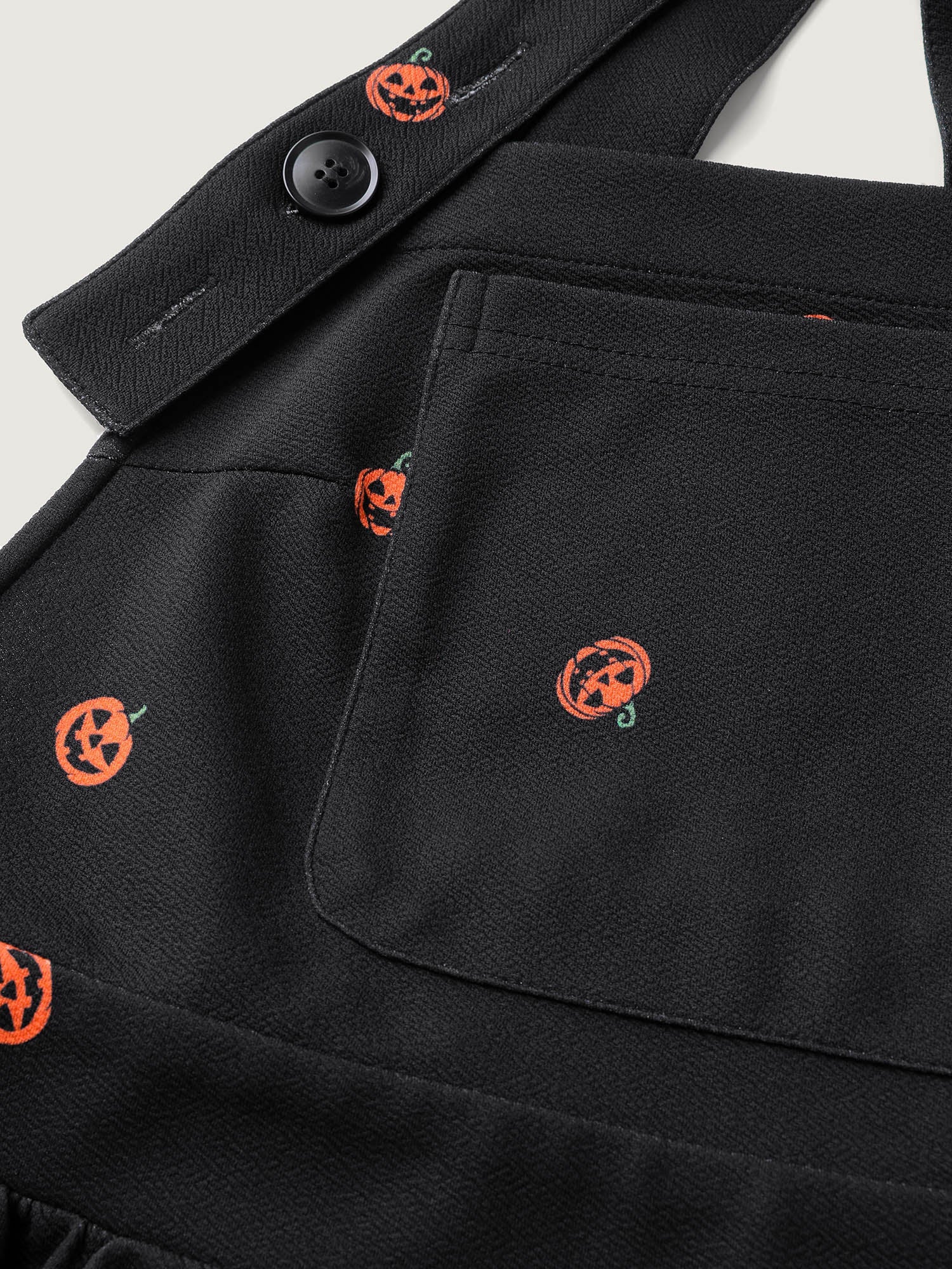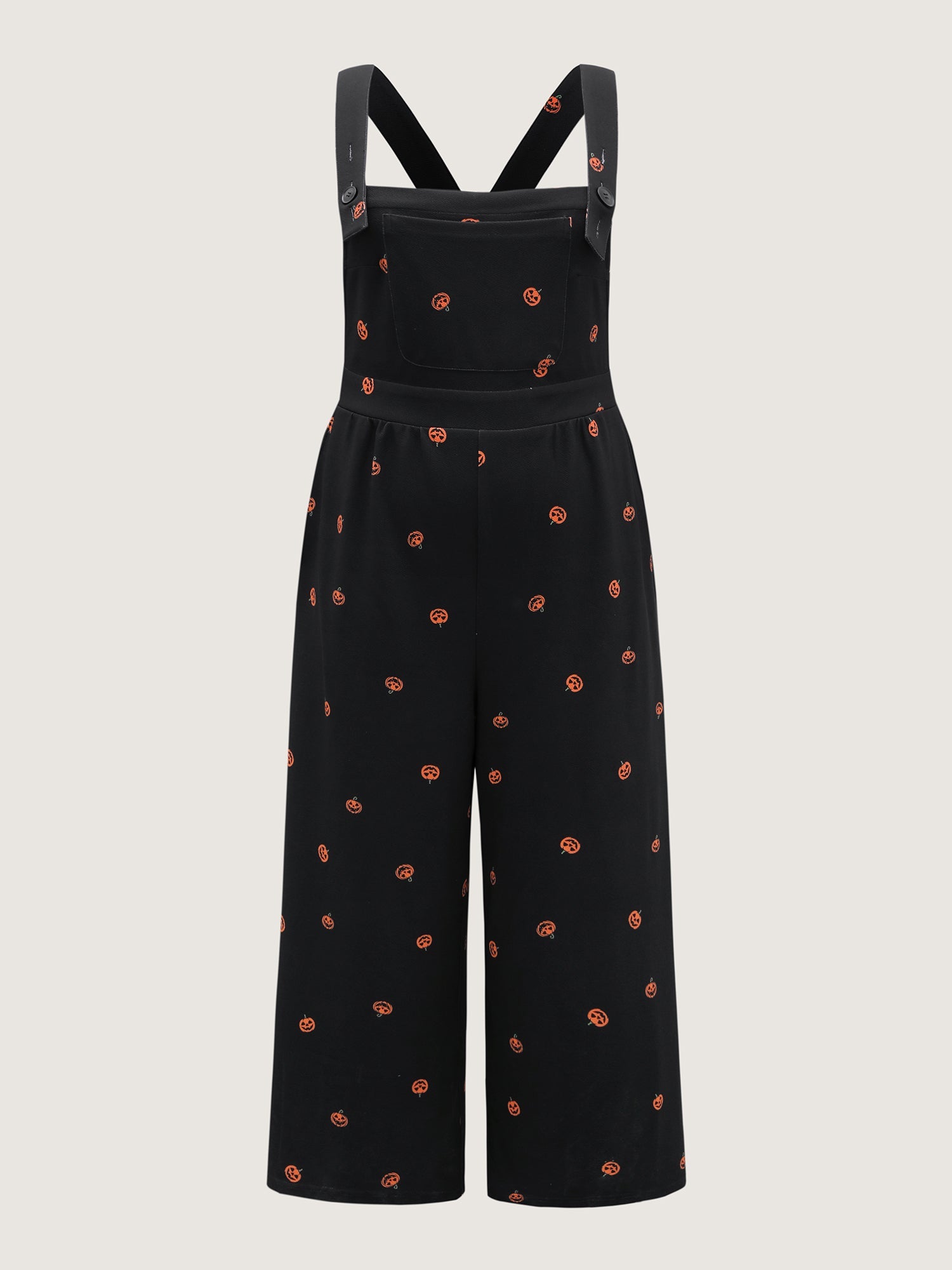 Pumpkin Print Stretchy Overall Strap Jumpsuit
