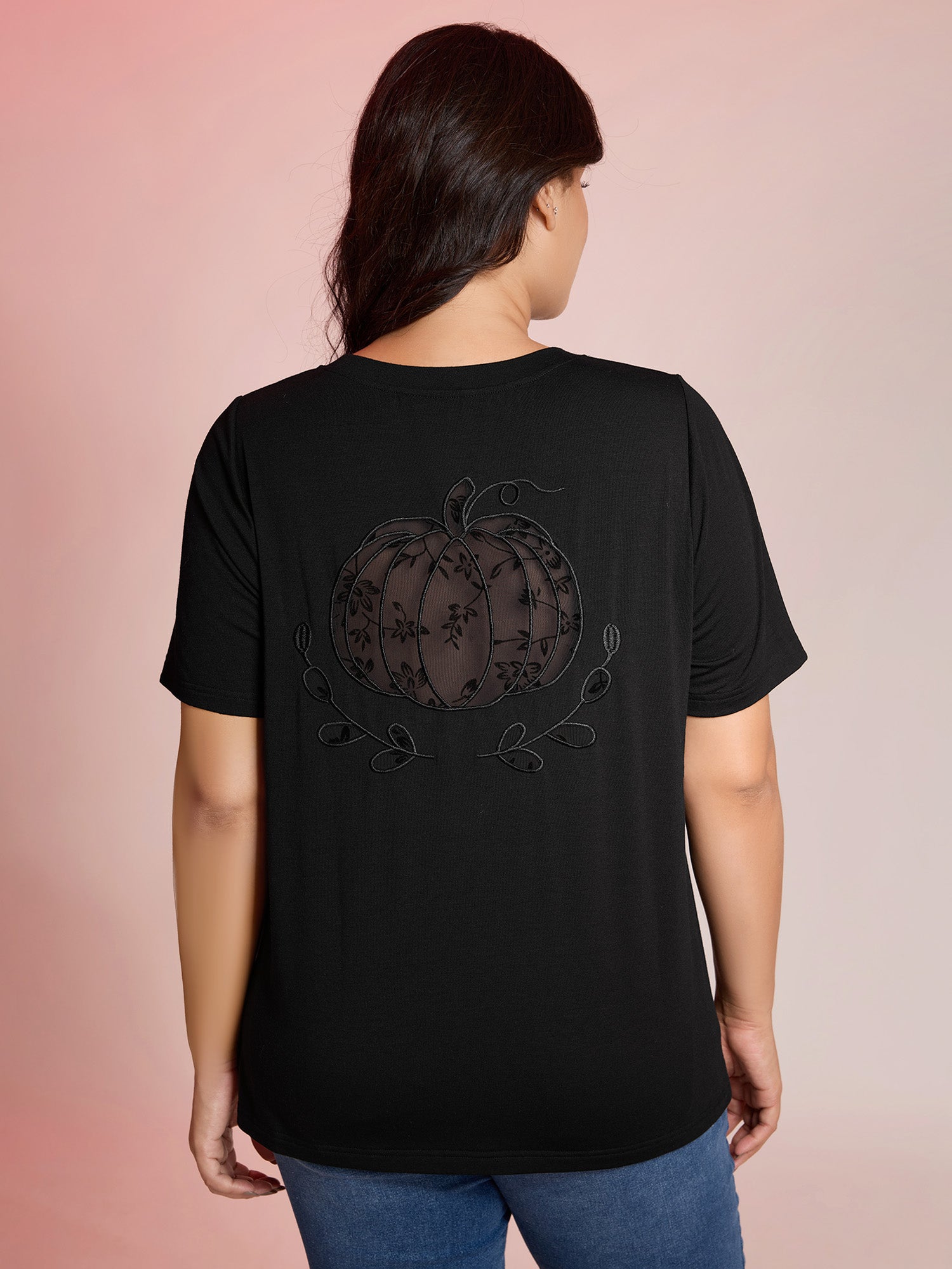 Pumpkin Sheer Cutwork Embroidery T-Shirt