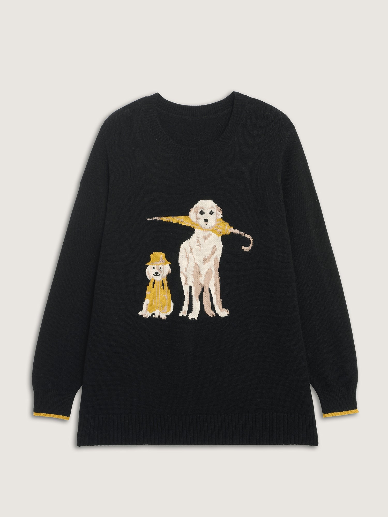 Puppy In Rain Jacquard Contrast Pullover