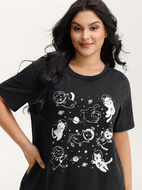 Pure Cotton Astronomer Cat Print T-Shirt