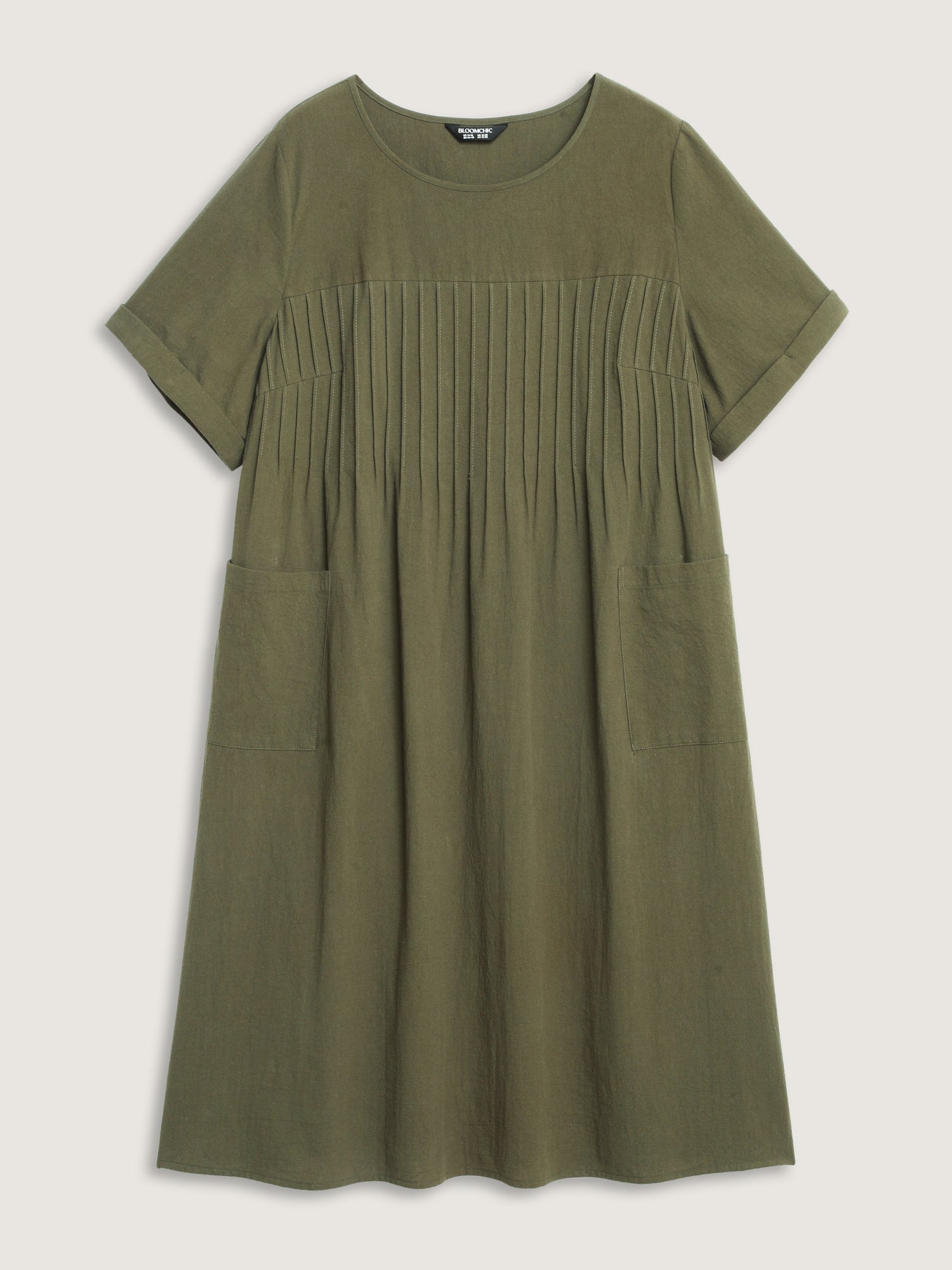 Pure Cotton Pin-Tuck Pleats Midi Dress