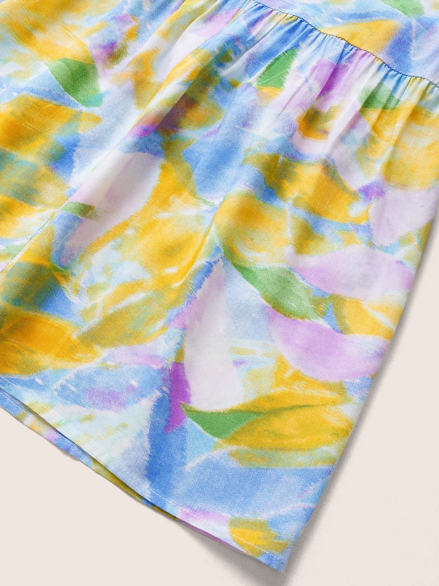Rayon Pixel Flower Print Ruffles Pocket Dress