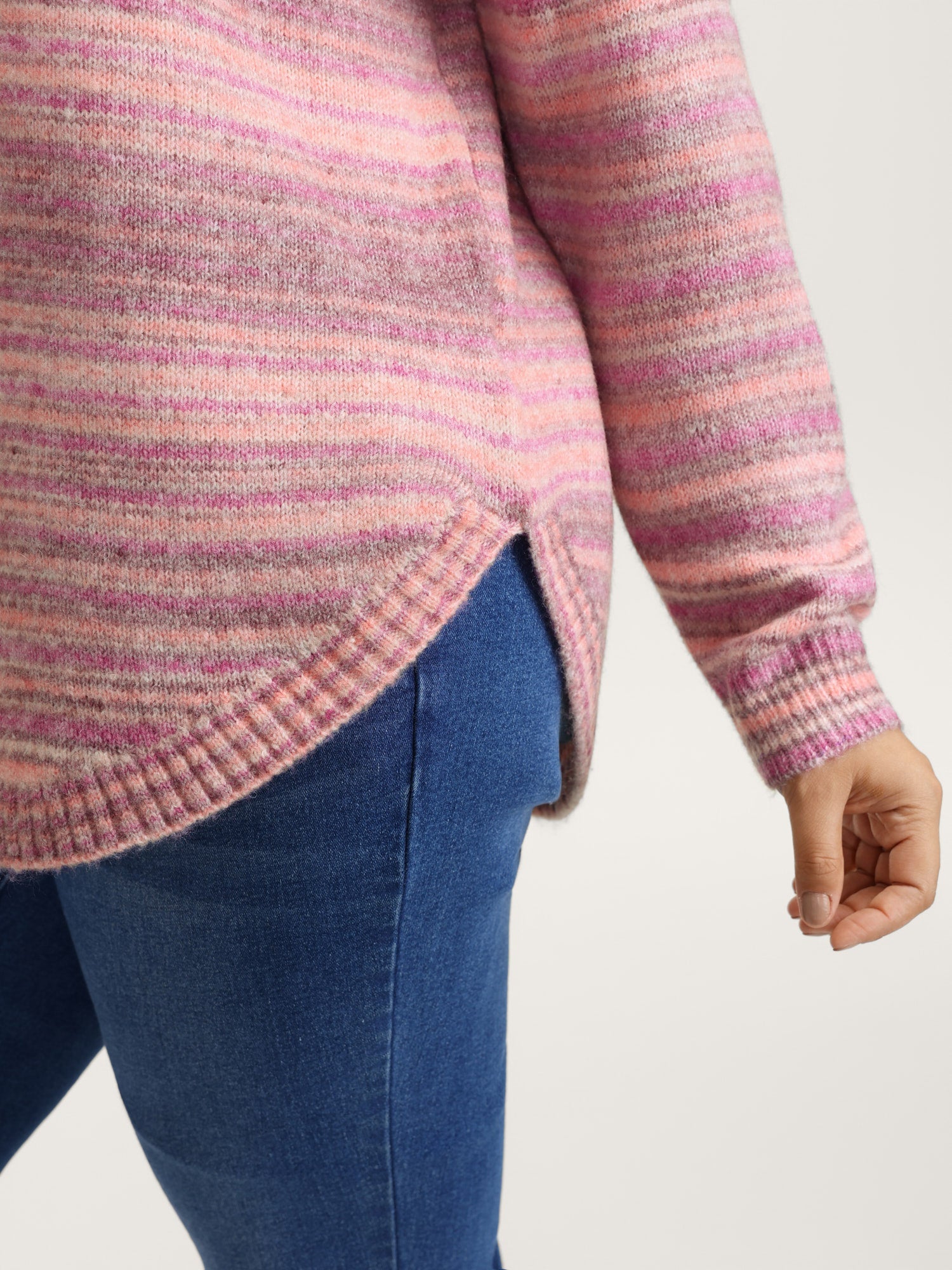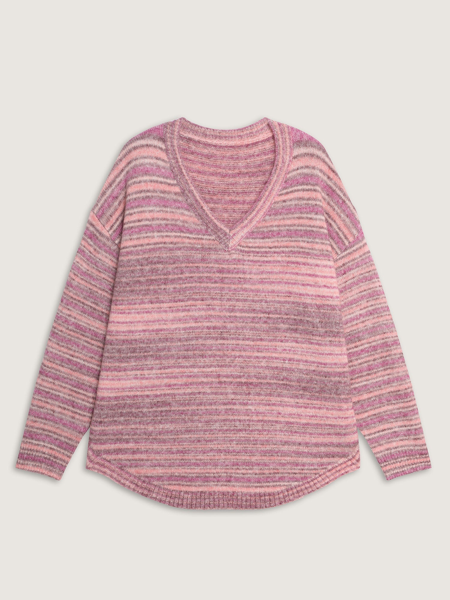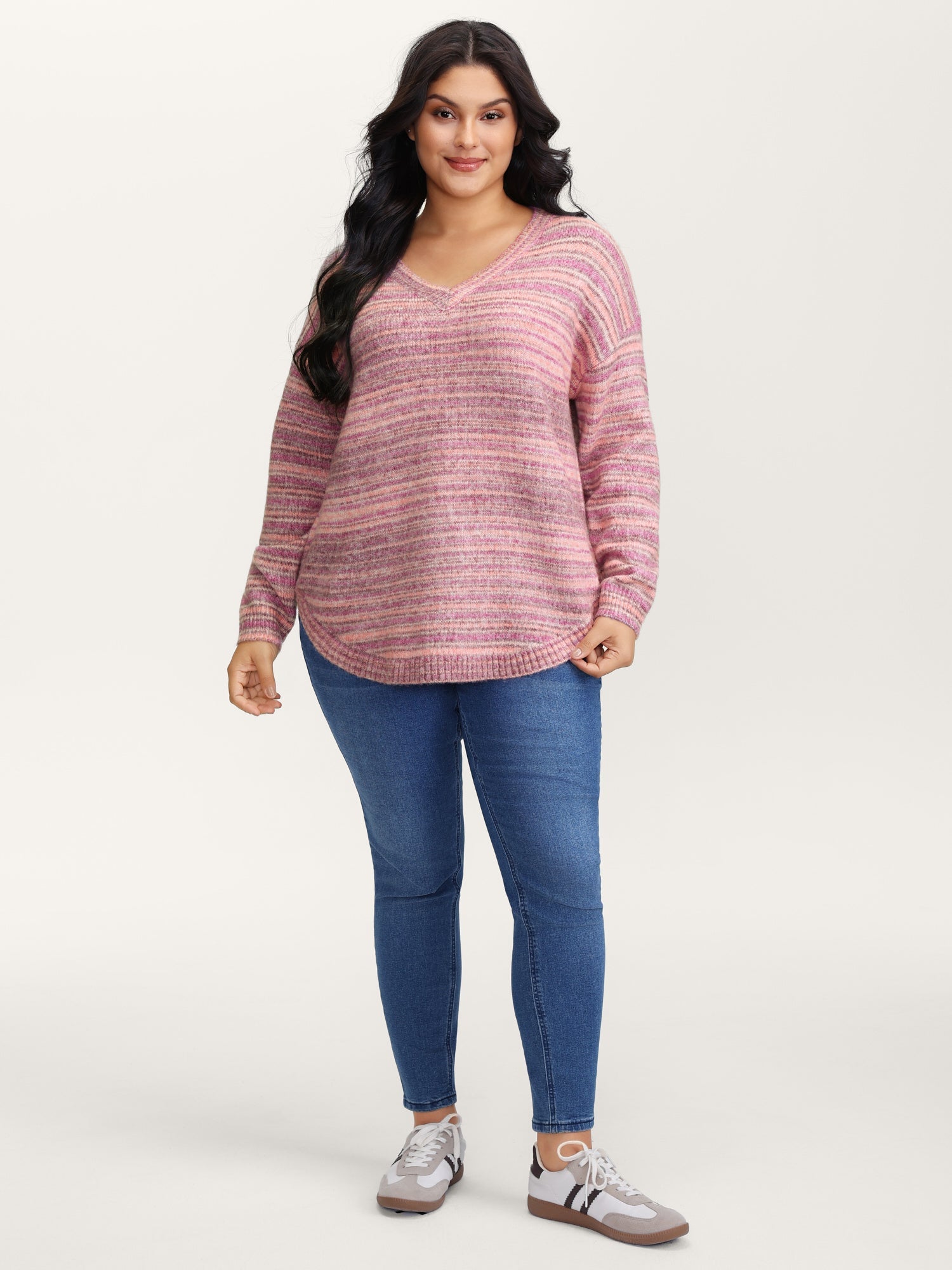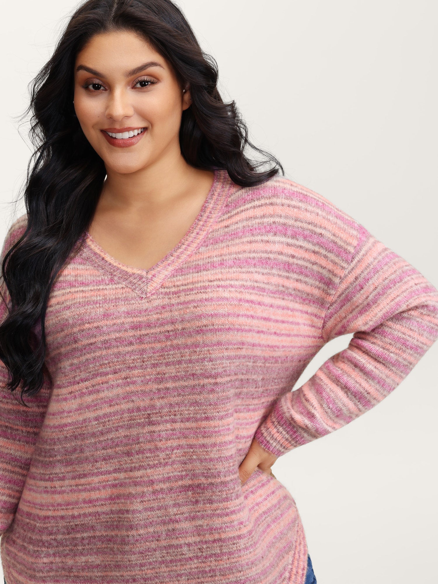 Ribbed Texture Curvy Hem V-Neck Pullover