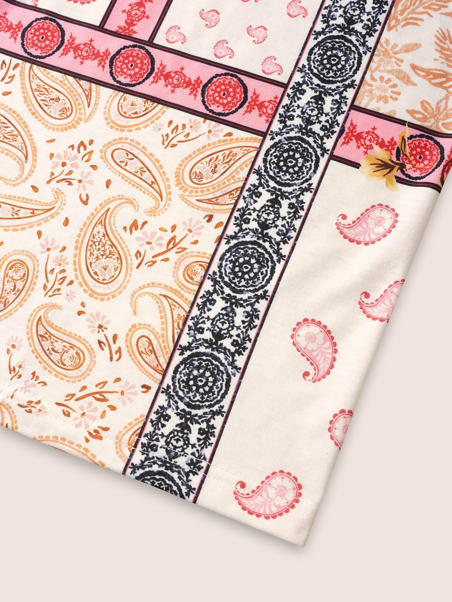 Round Neck Boho Print Patchwork T-shirt