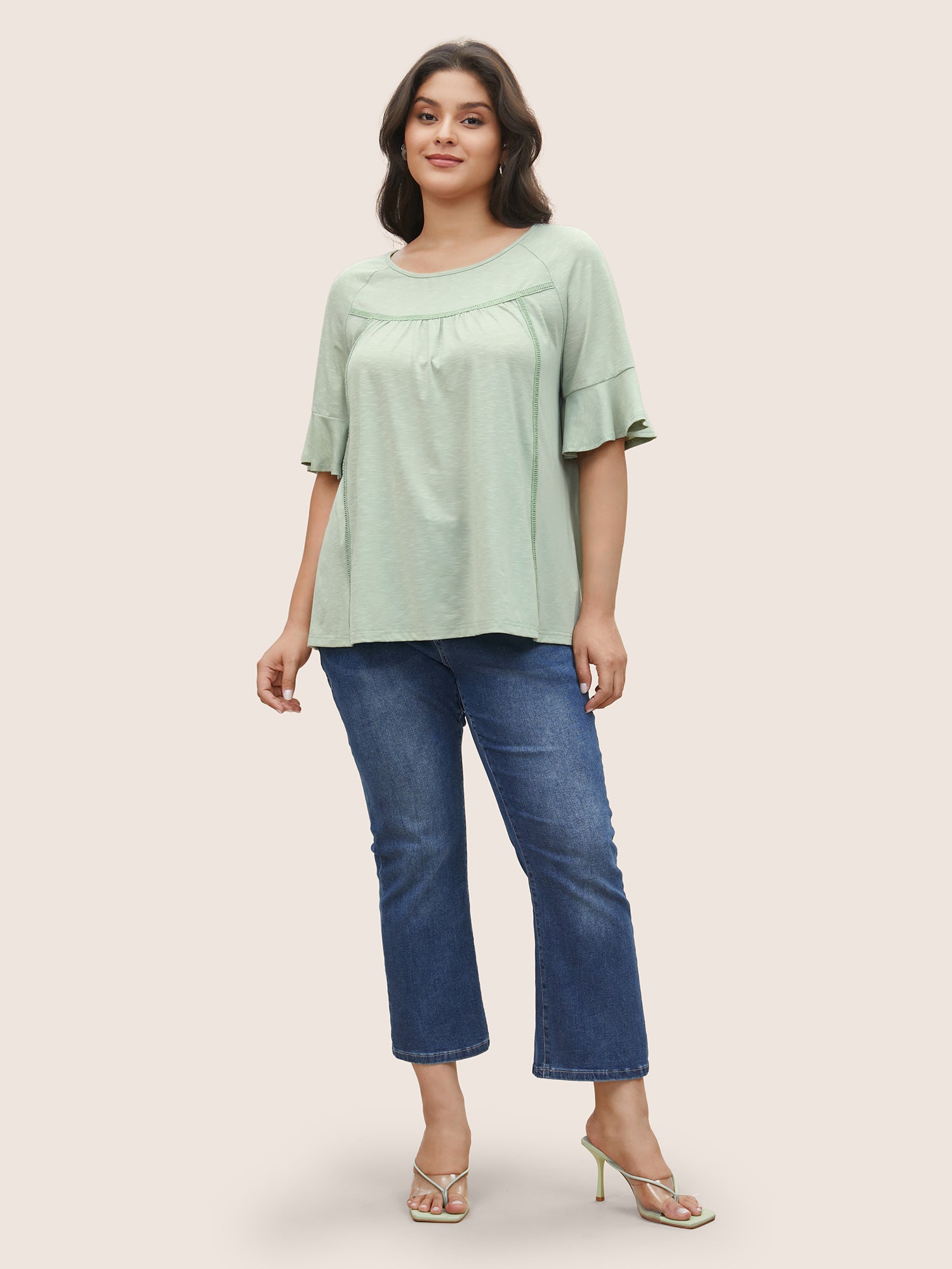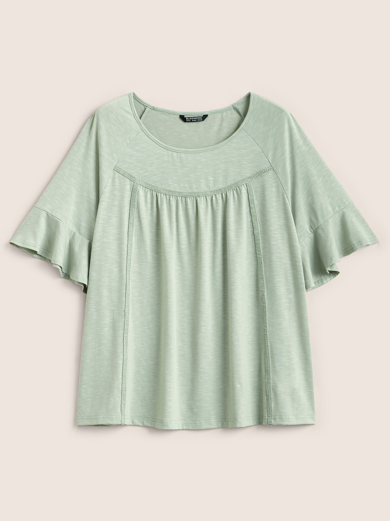 Round Neck Plain Gathered Ruffles T-shirt