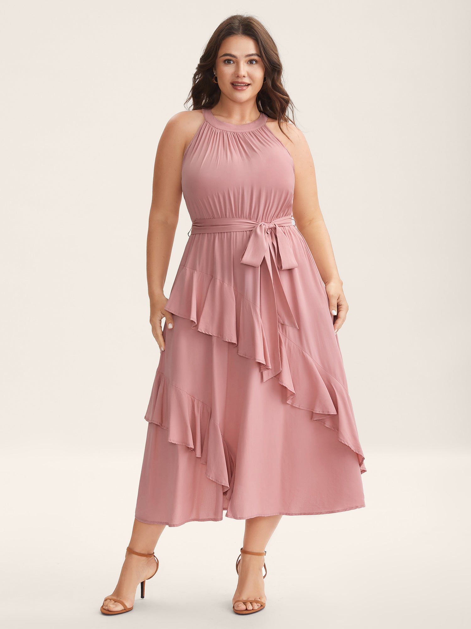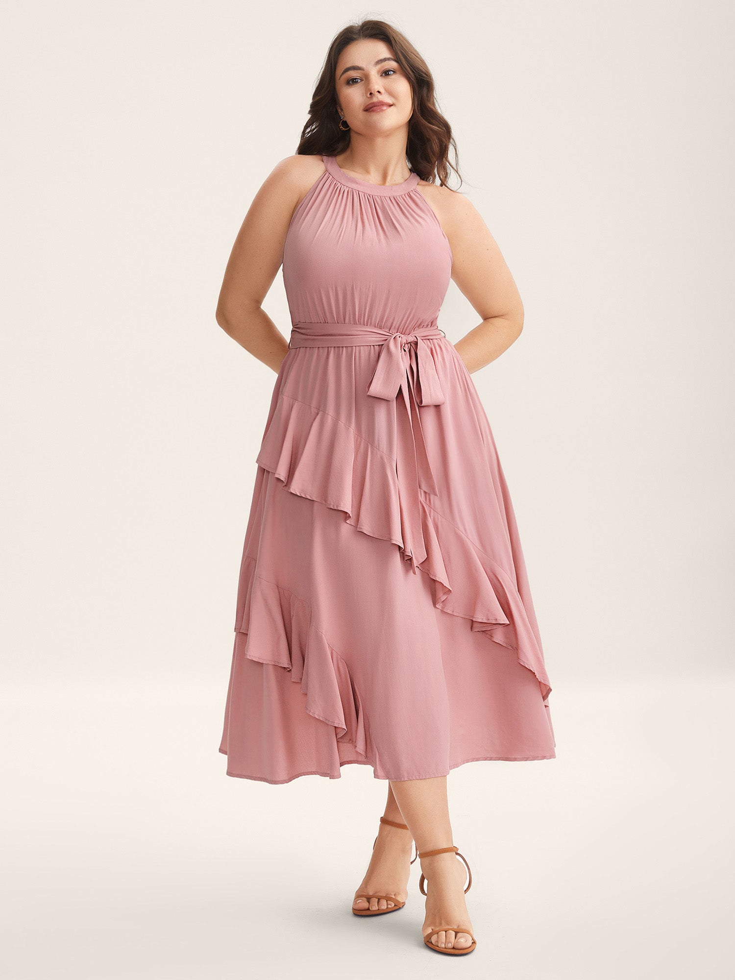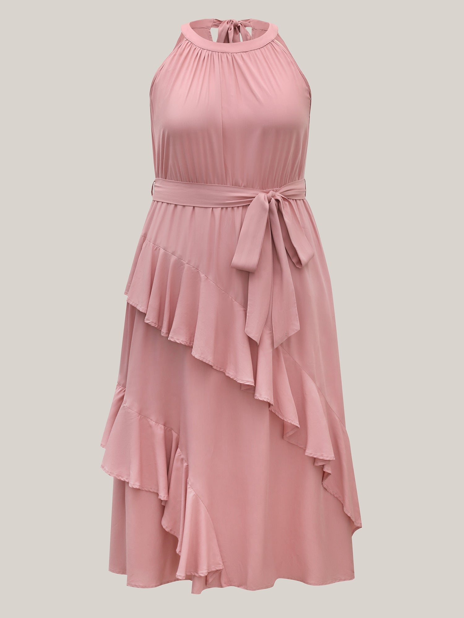 Ruffled Halter Neck Solid Midi Dress