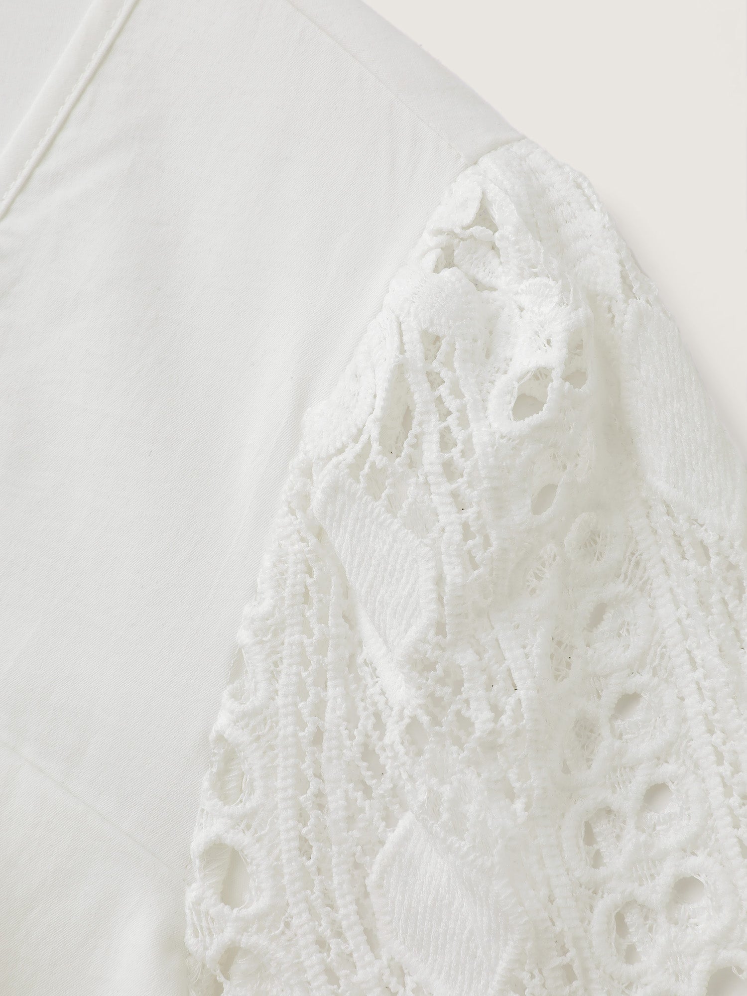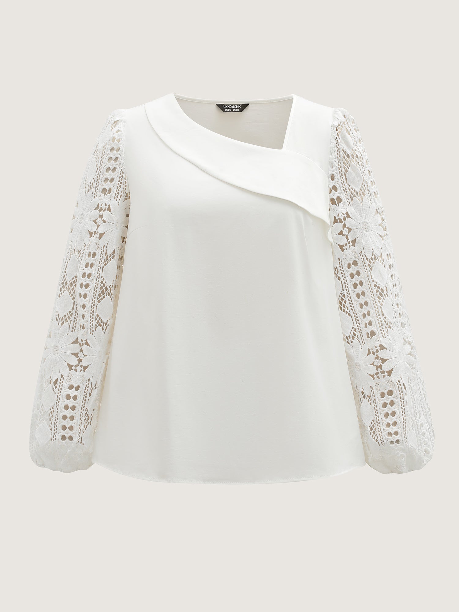 Sheer Lace Sleeve Asymmetrical Neckline Blouse