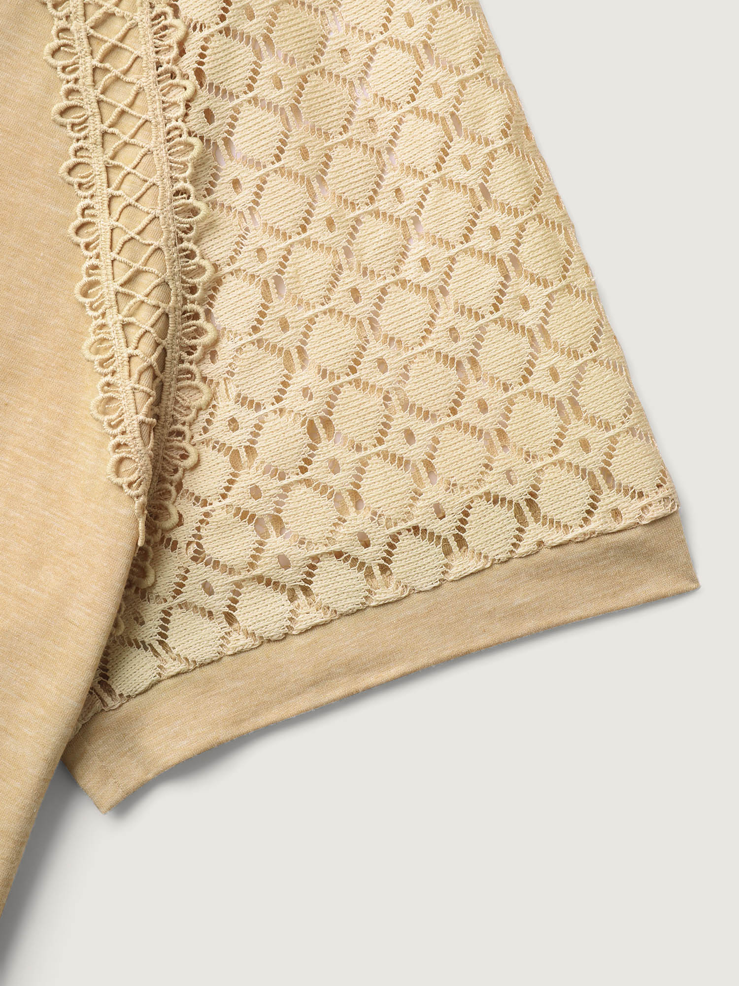 Sheer Lace Sleeve Spliced Solid T-Shirt