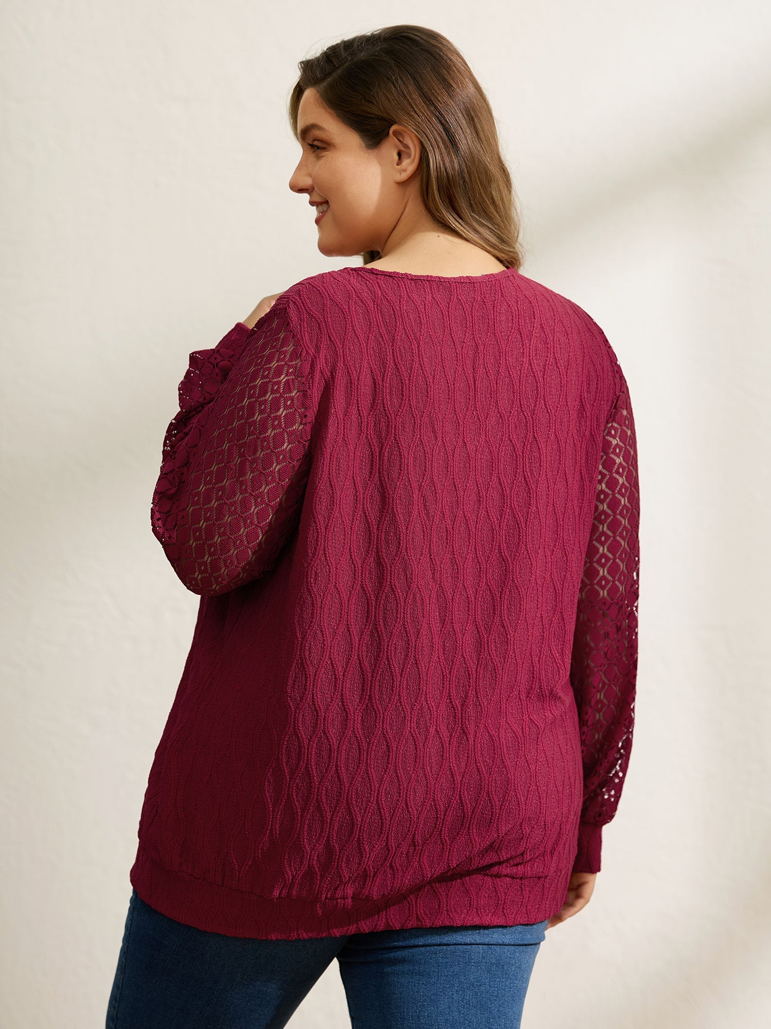 Sheer Textured Sleeve Stretchy Knit Top