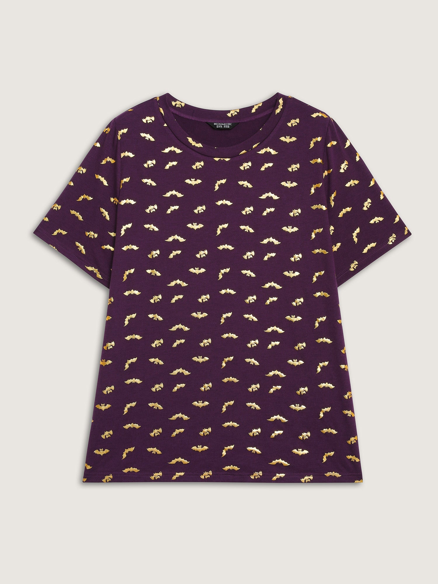Shimmery Gold Bat Print Crewneck T-Shirt