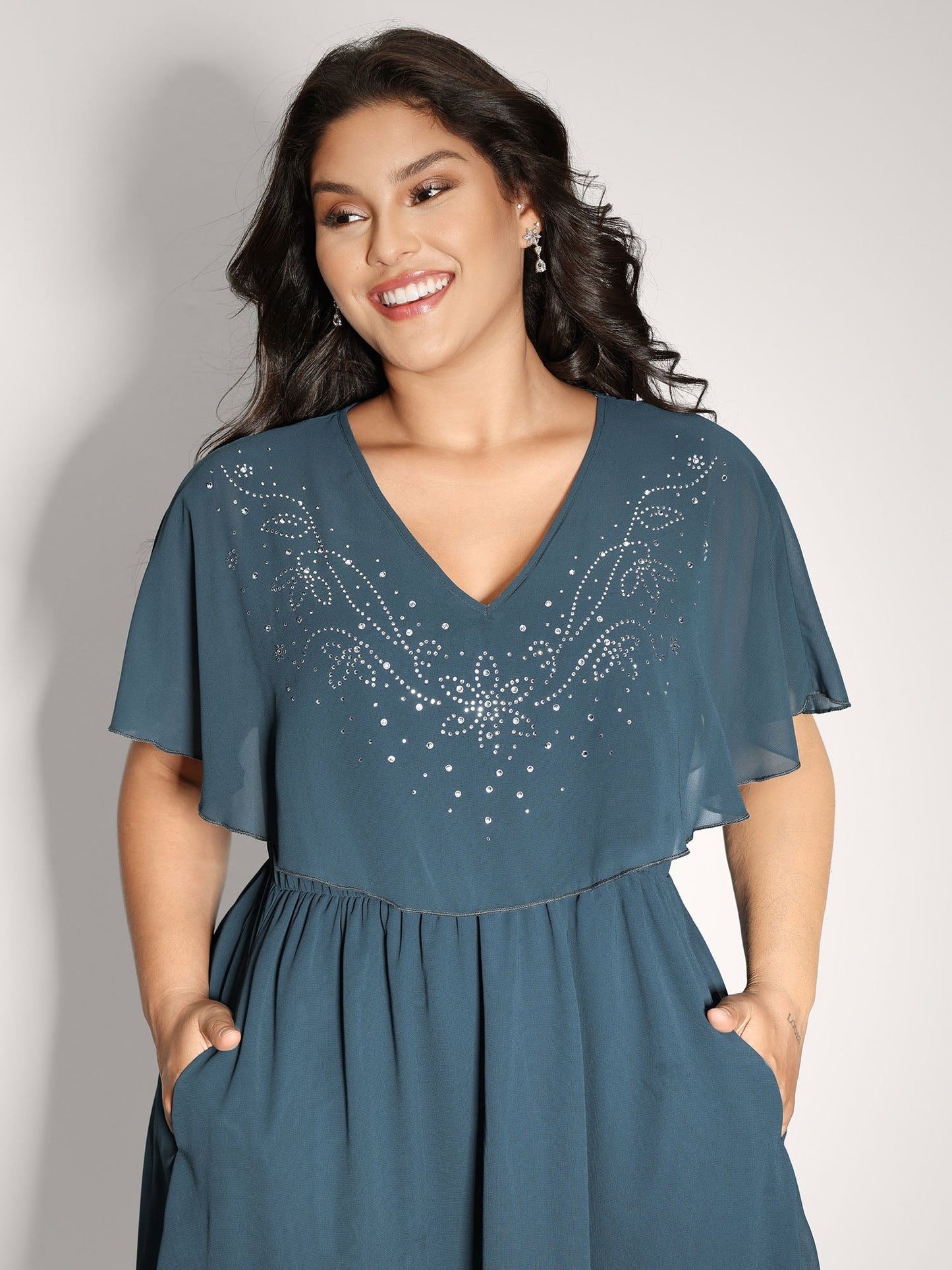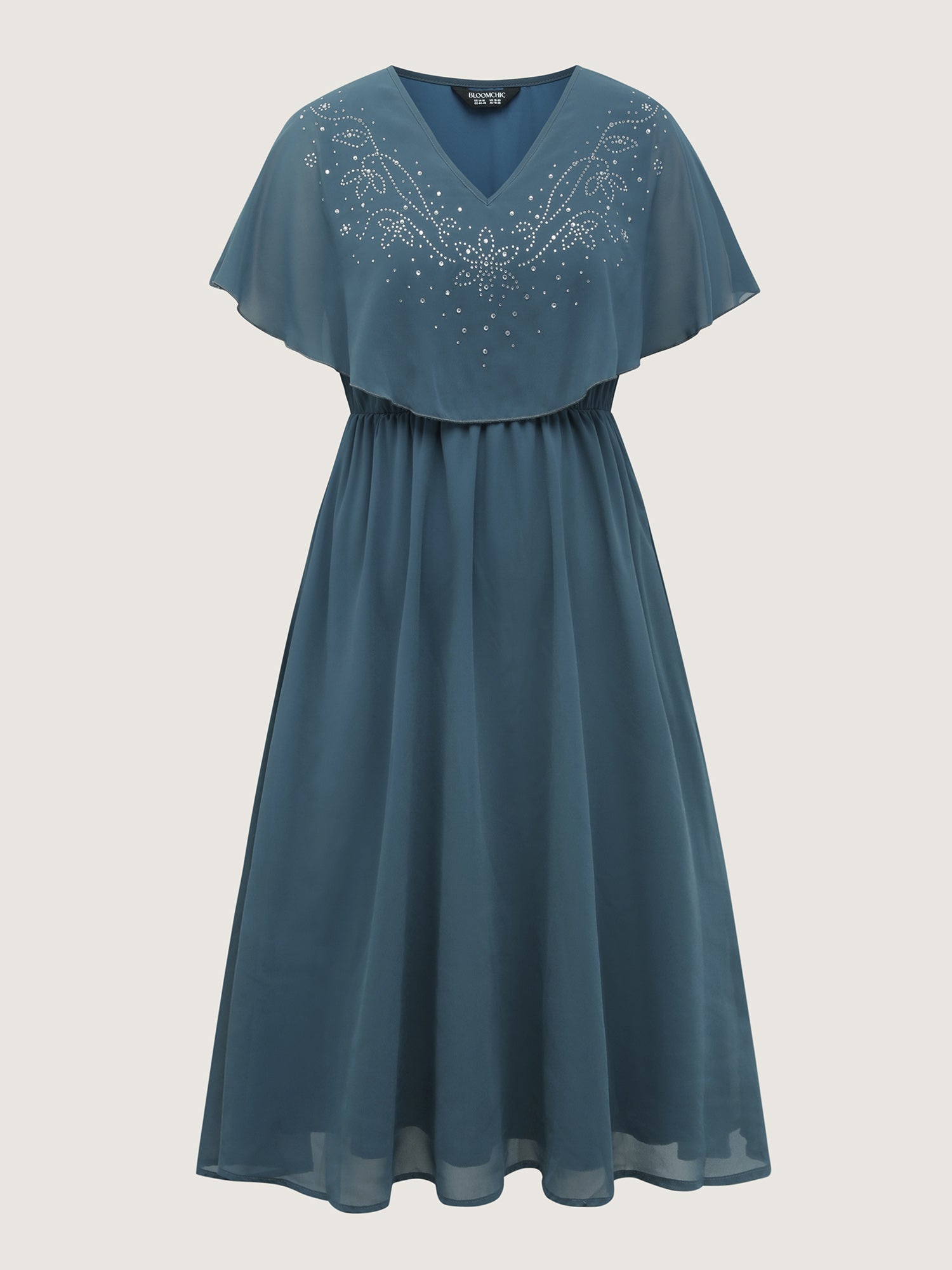 Shimmery Hotfix Rhinestone Layered Midi Dress