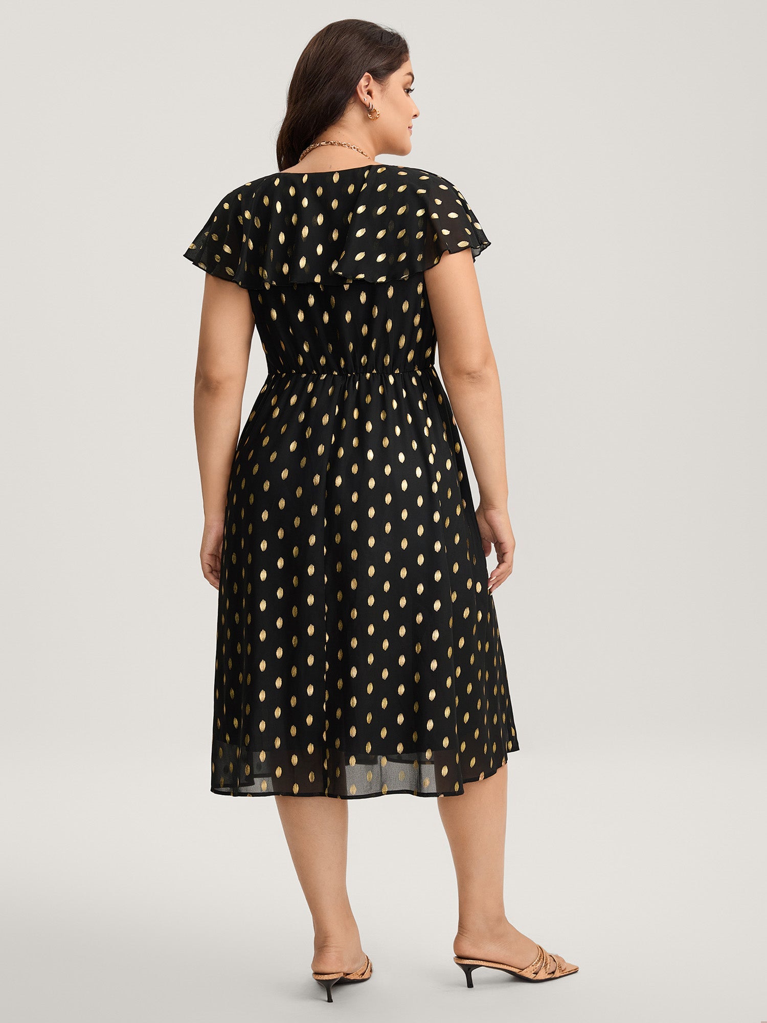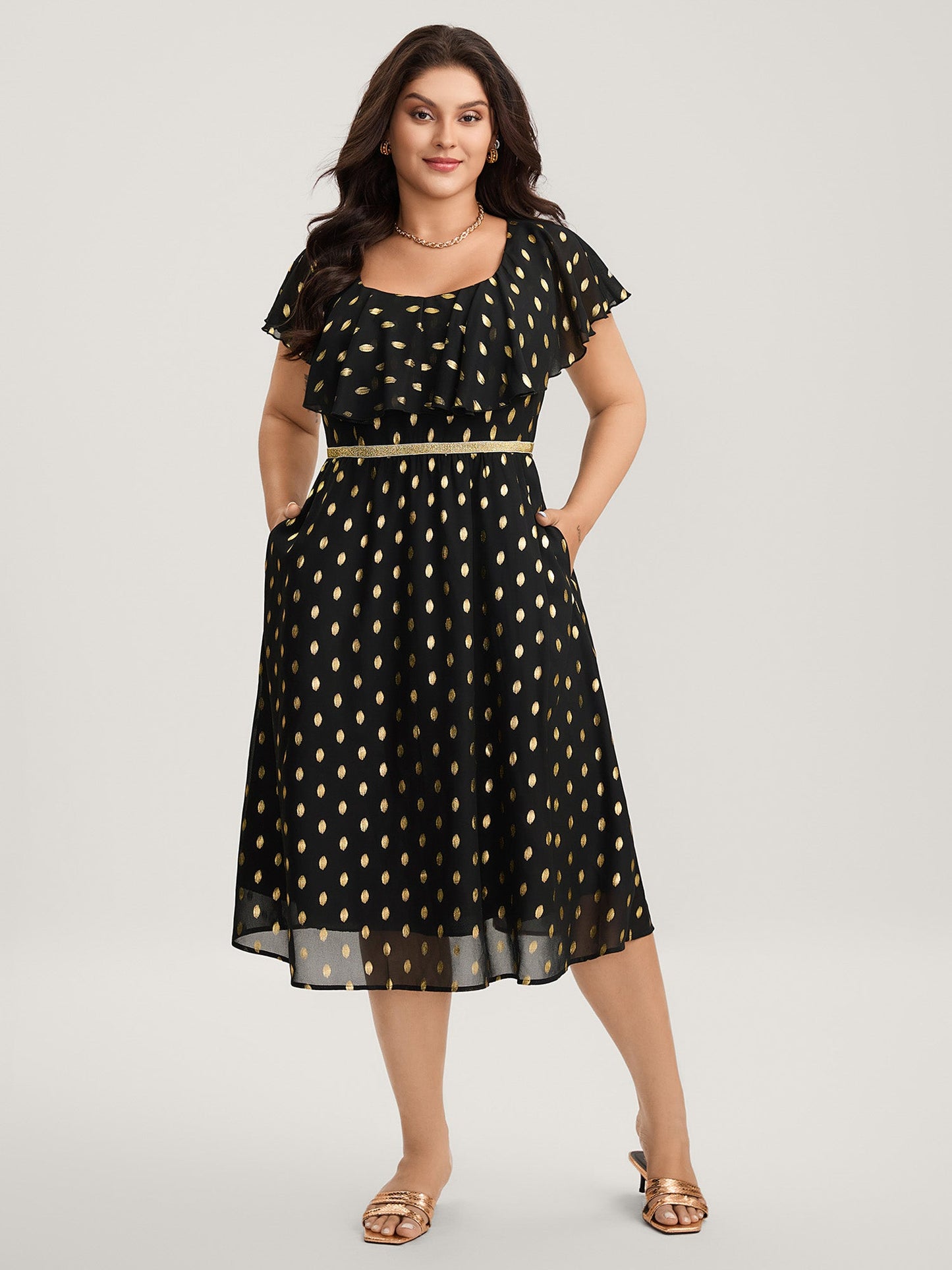 Shimmery Polka Dot Stretchy Waist Midi Dress