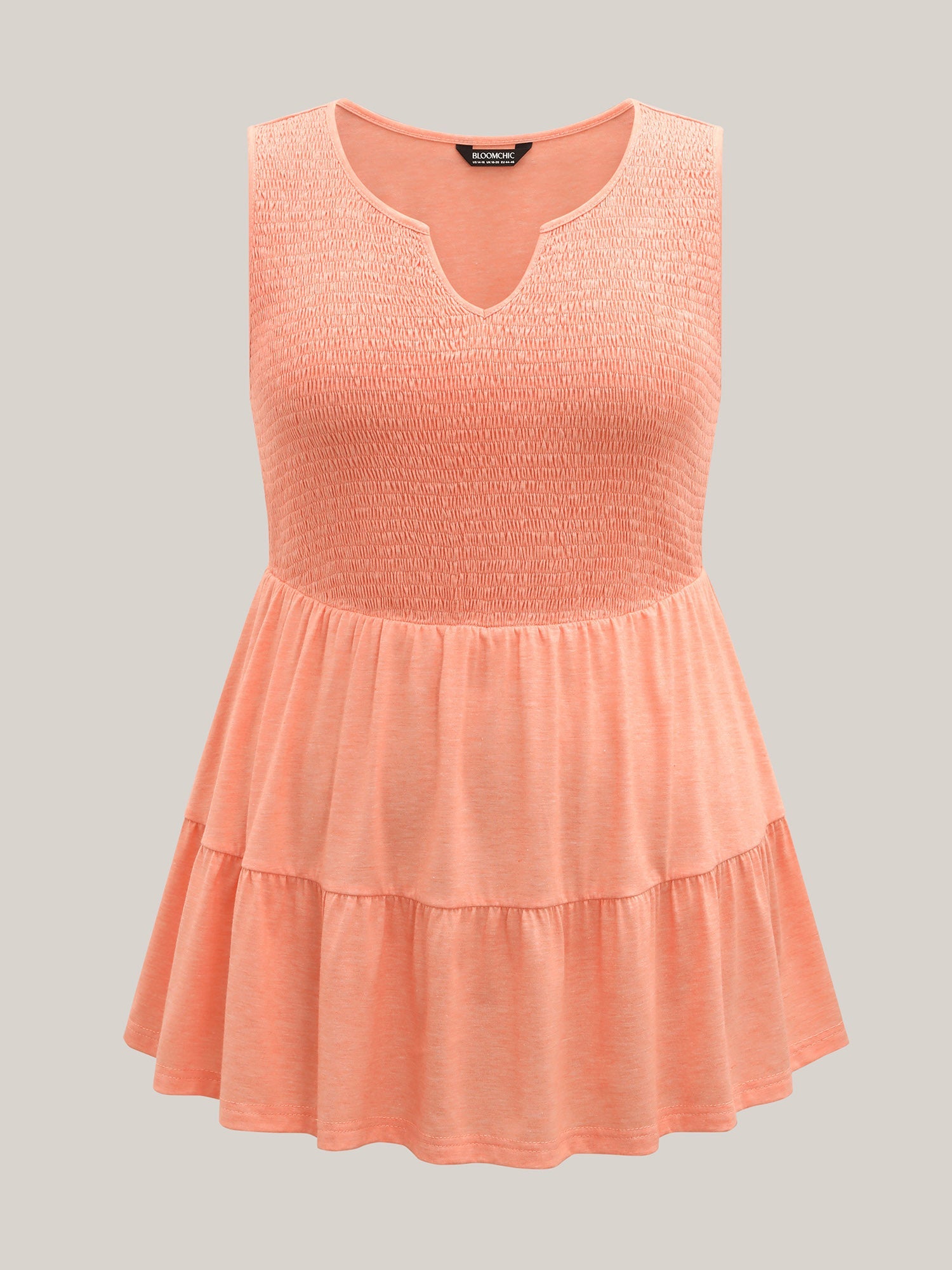 Shirred Bodice Spliced Tiered Sleeveless Top