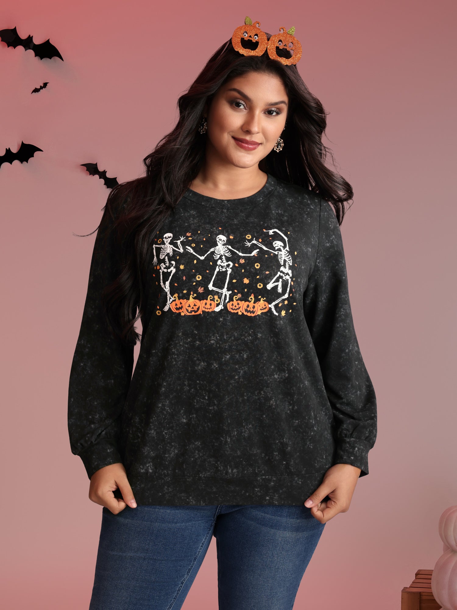 Skeleton Halloween Party Snowflake Effect Sweatshirt