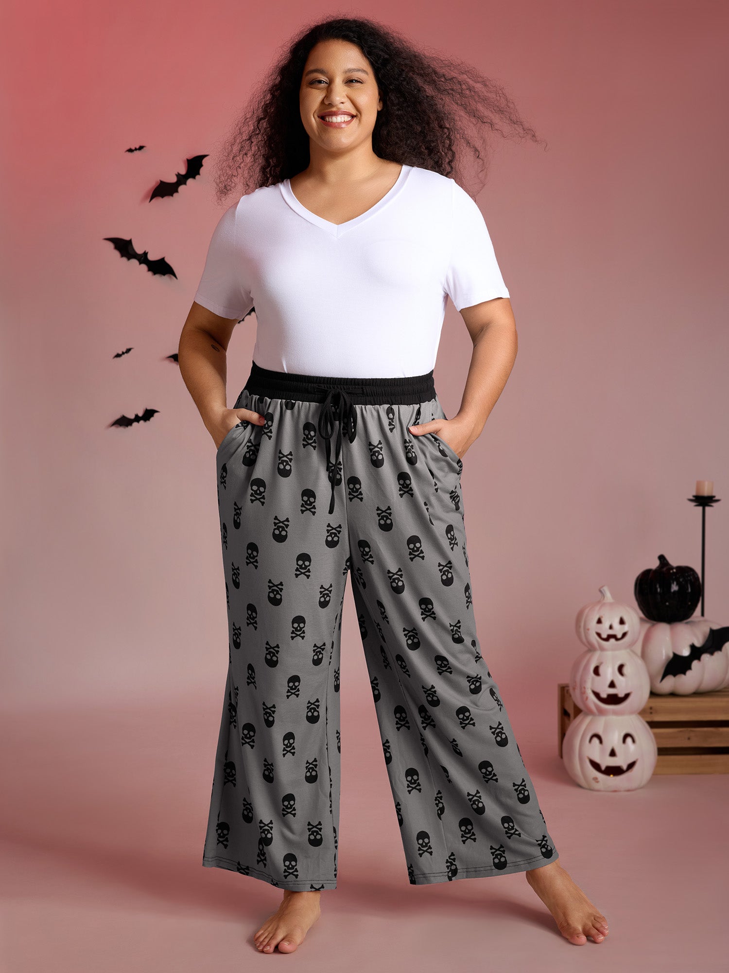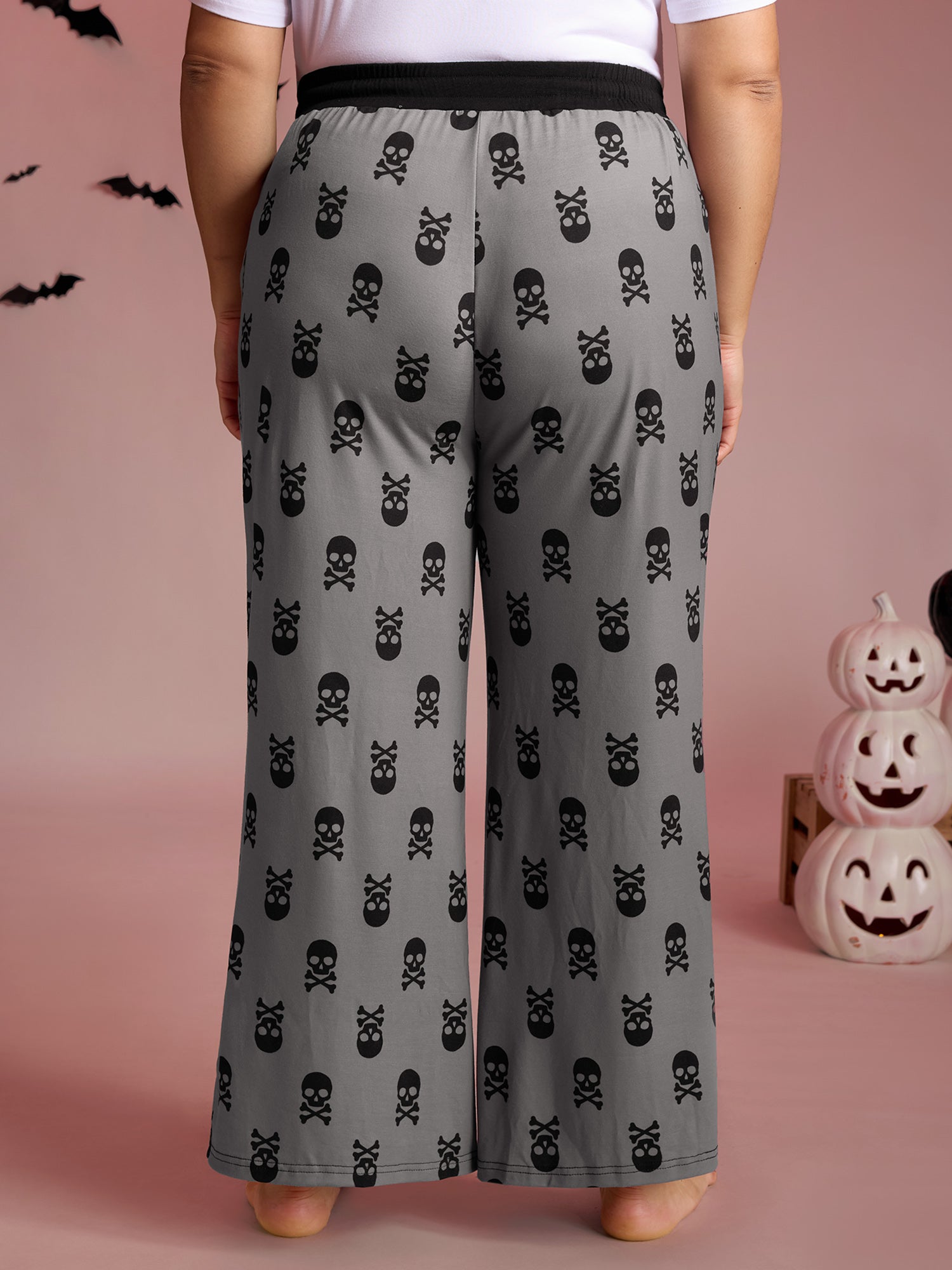 Skull Halloween Print Micro-Flare Lounge Pants