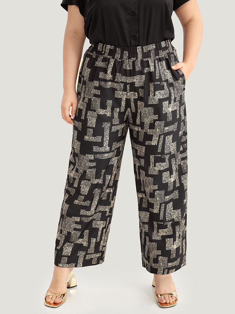 Snakeskin Geometric Contrast Pocket Woven Pants