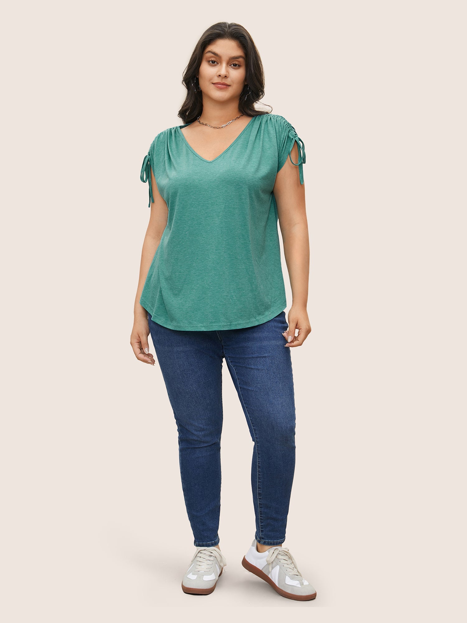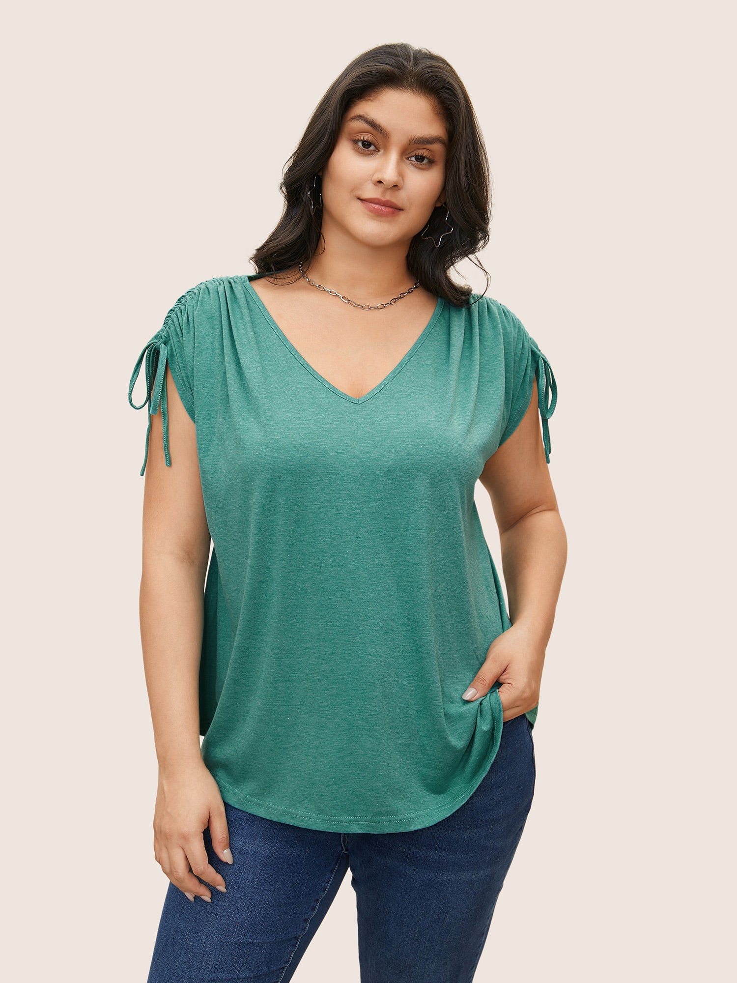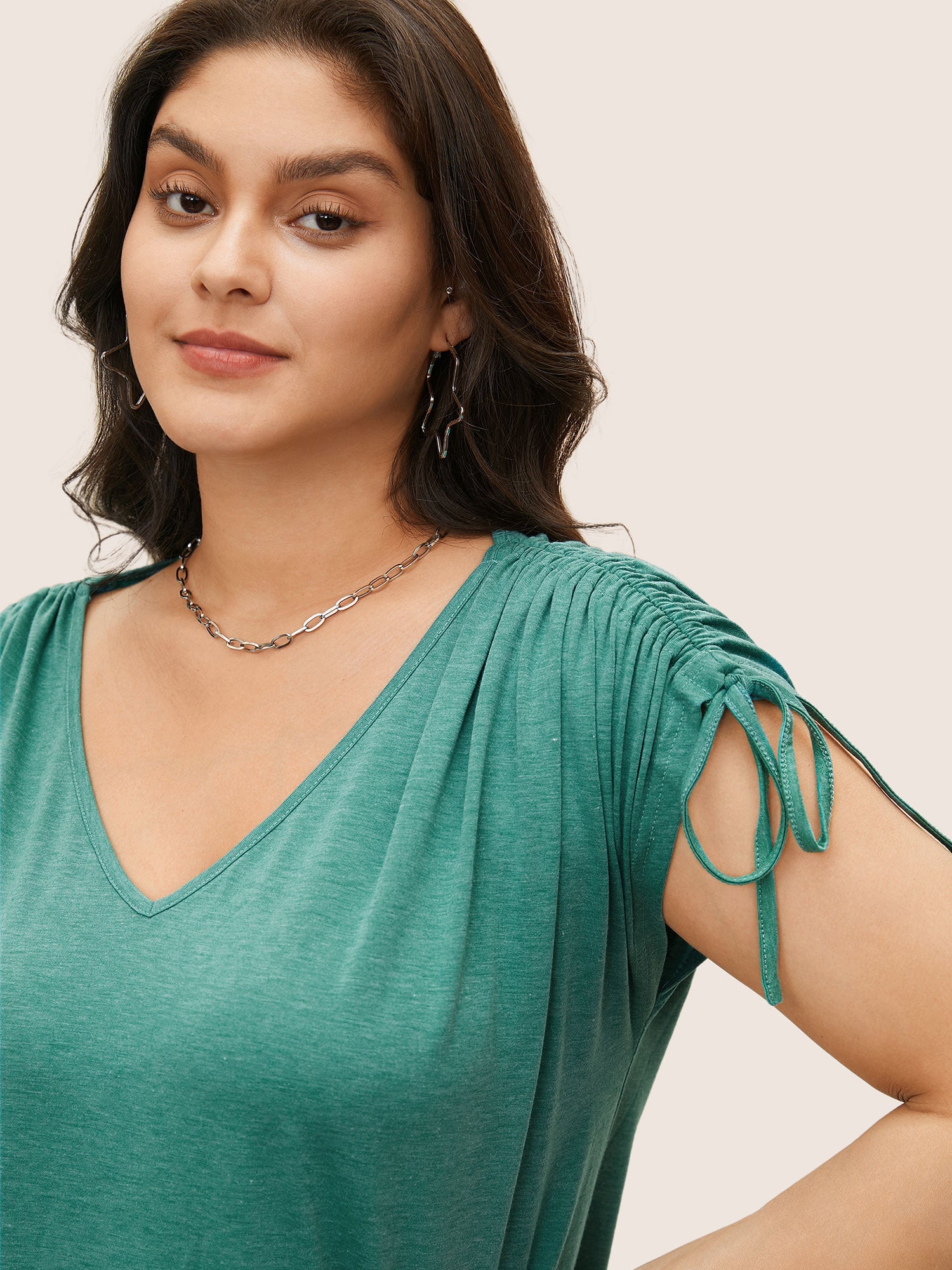 Solid Drawstring Dolman Sleeve T-shirt