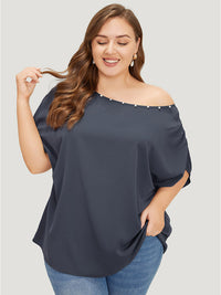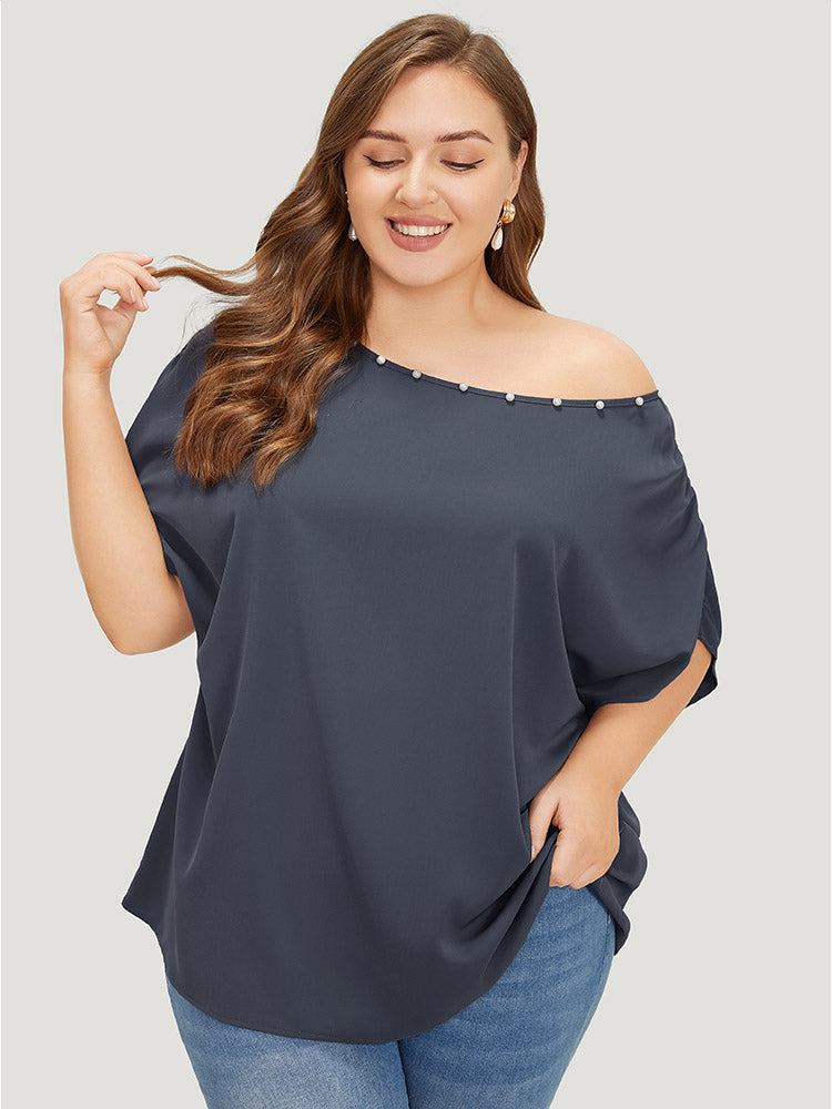 Solid Pearl Beaded Ruched Sleeve Blouse