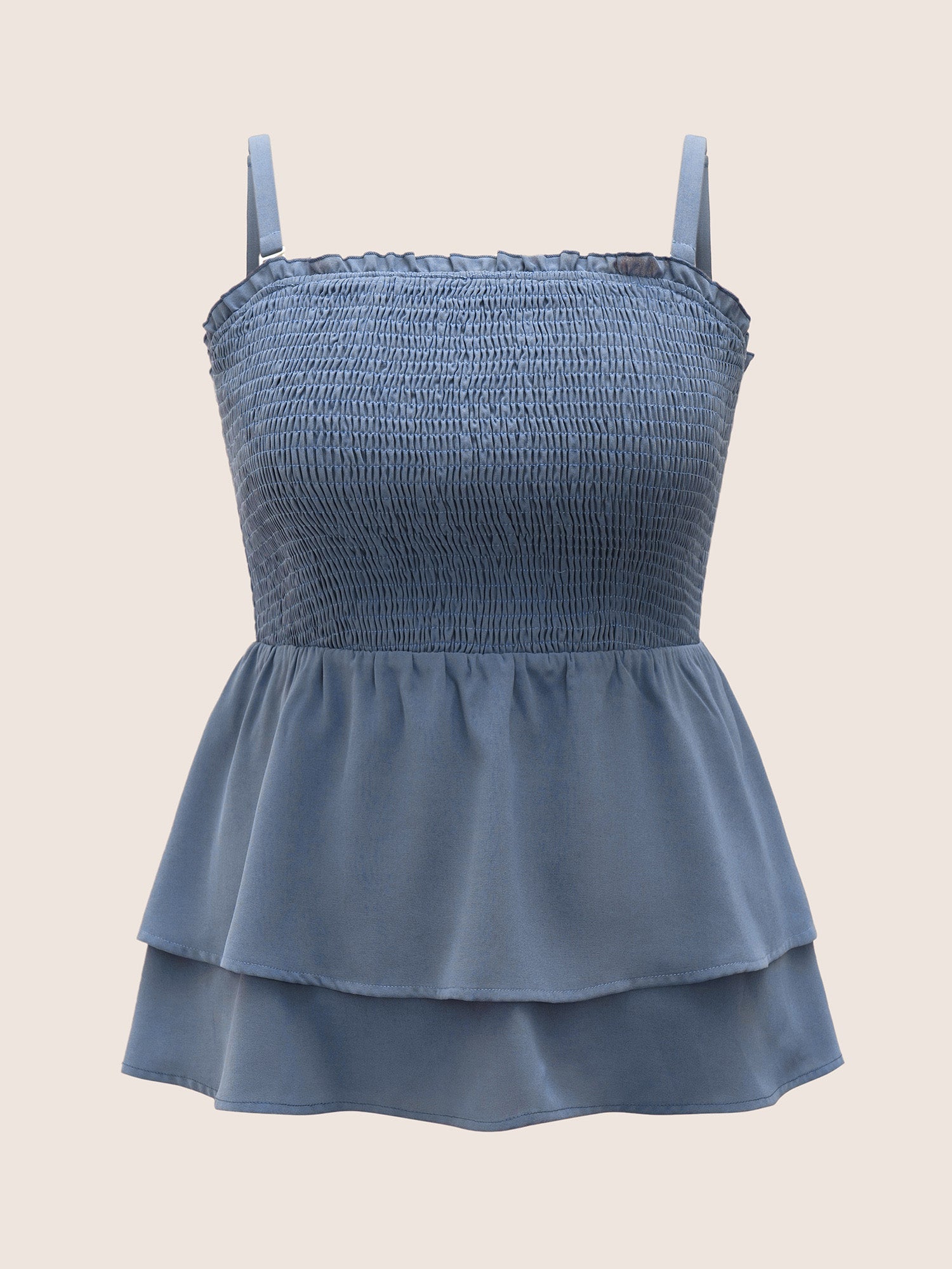 Solid Shirred Ruffle Layered Hem Cami Top