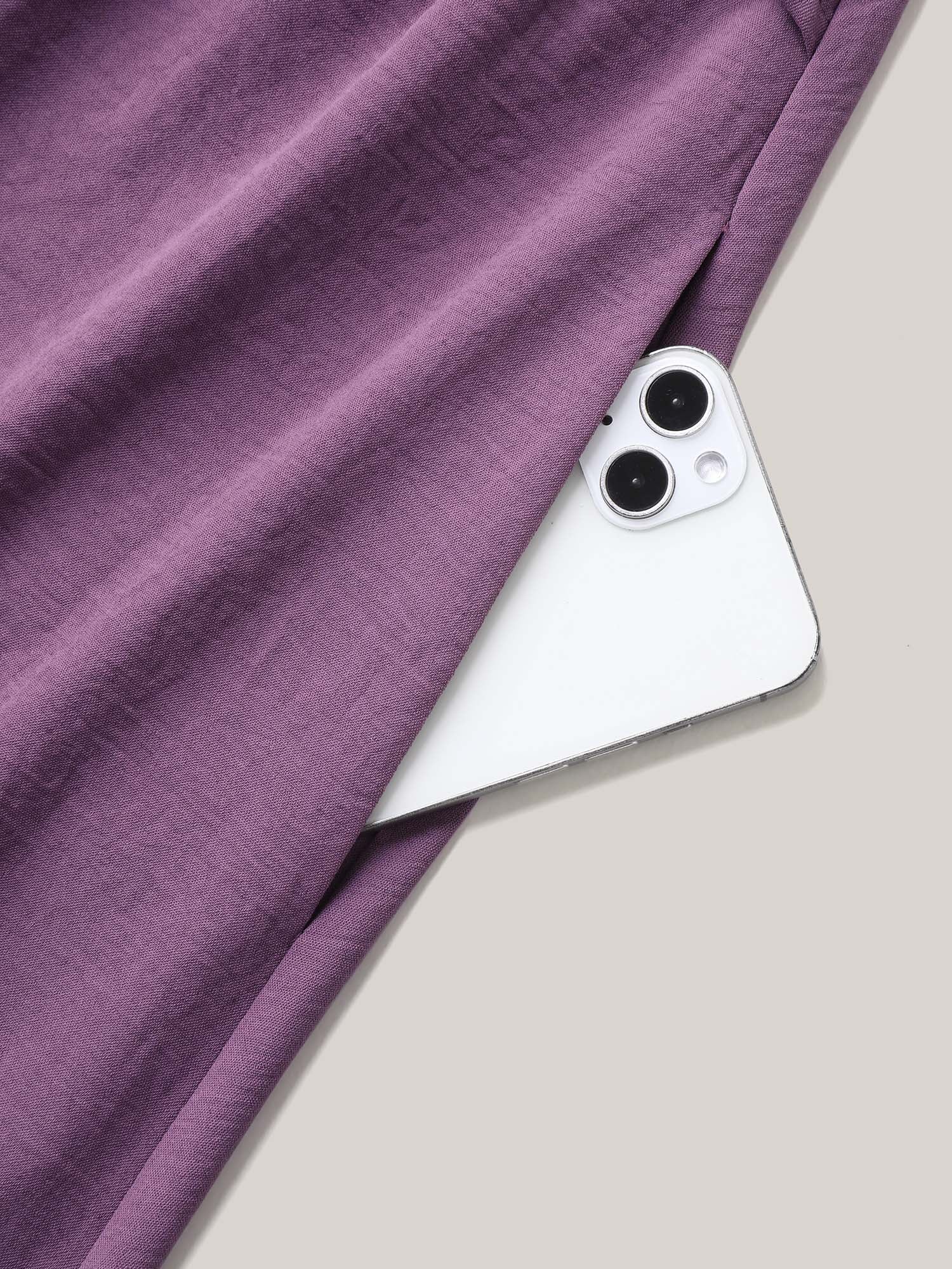 Solid Surplice Neck Pockets Midi Dress