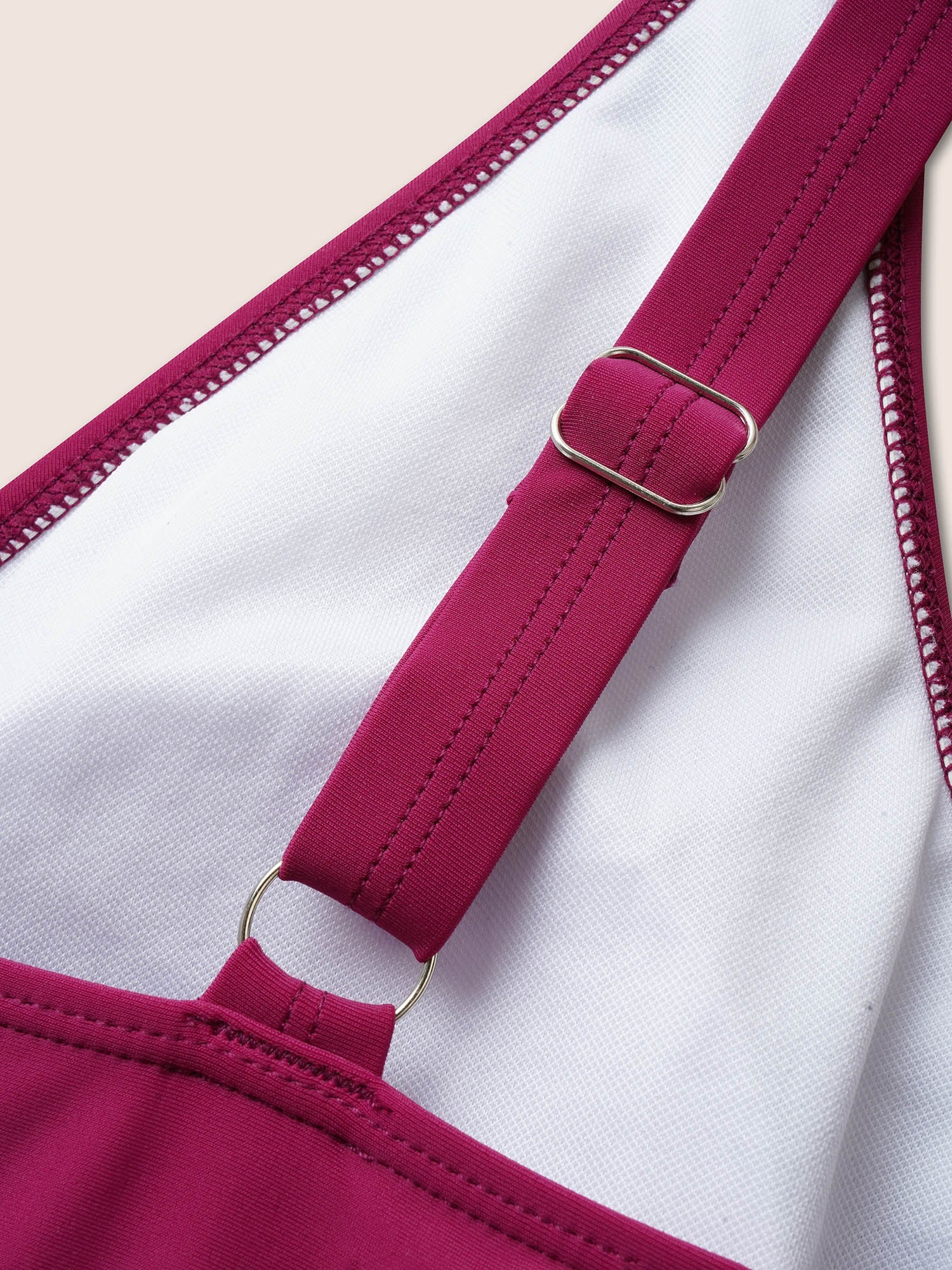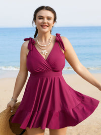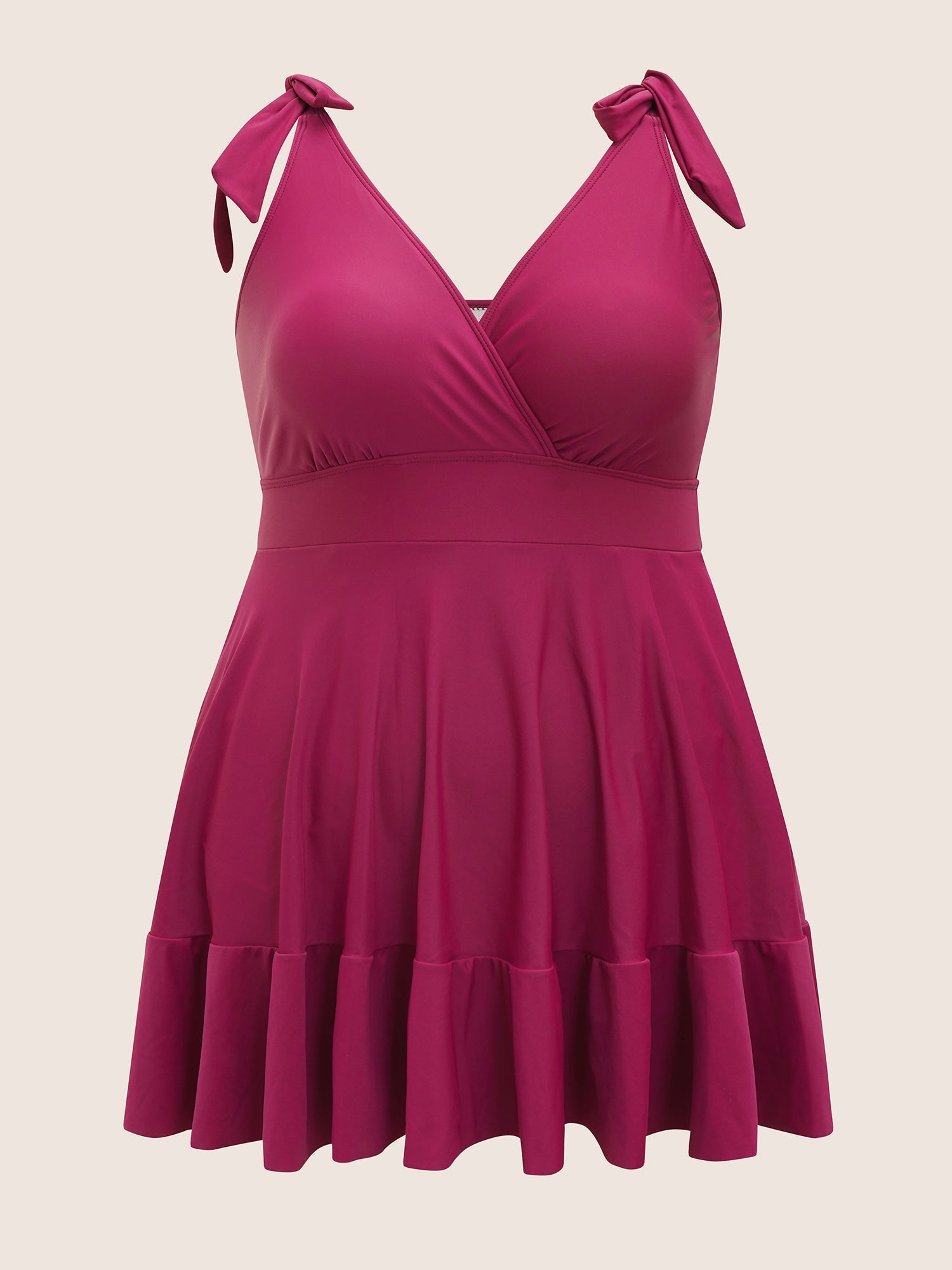 Solid Tie Knot Pocket Ruffles Swim Dress