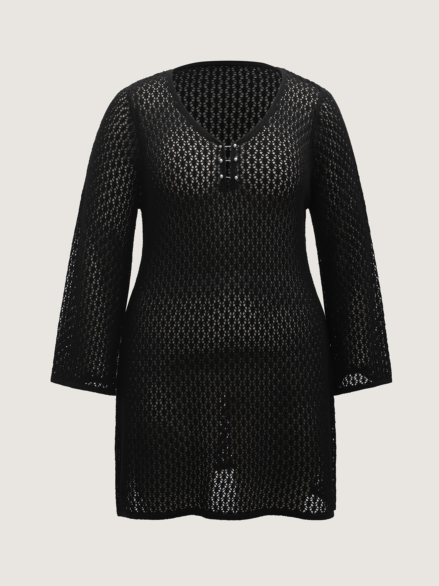 Split Neck Beaded Cut-Out Swim Cover-Up