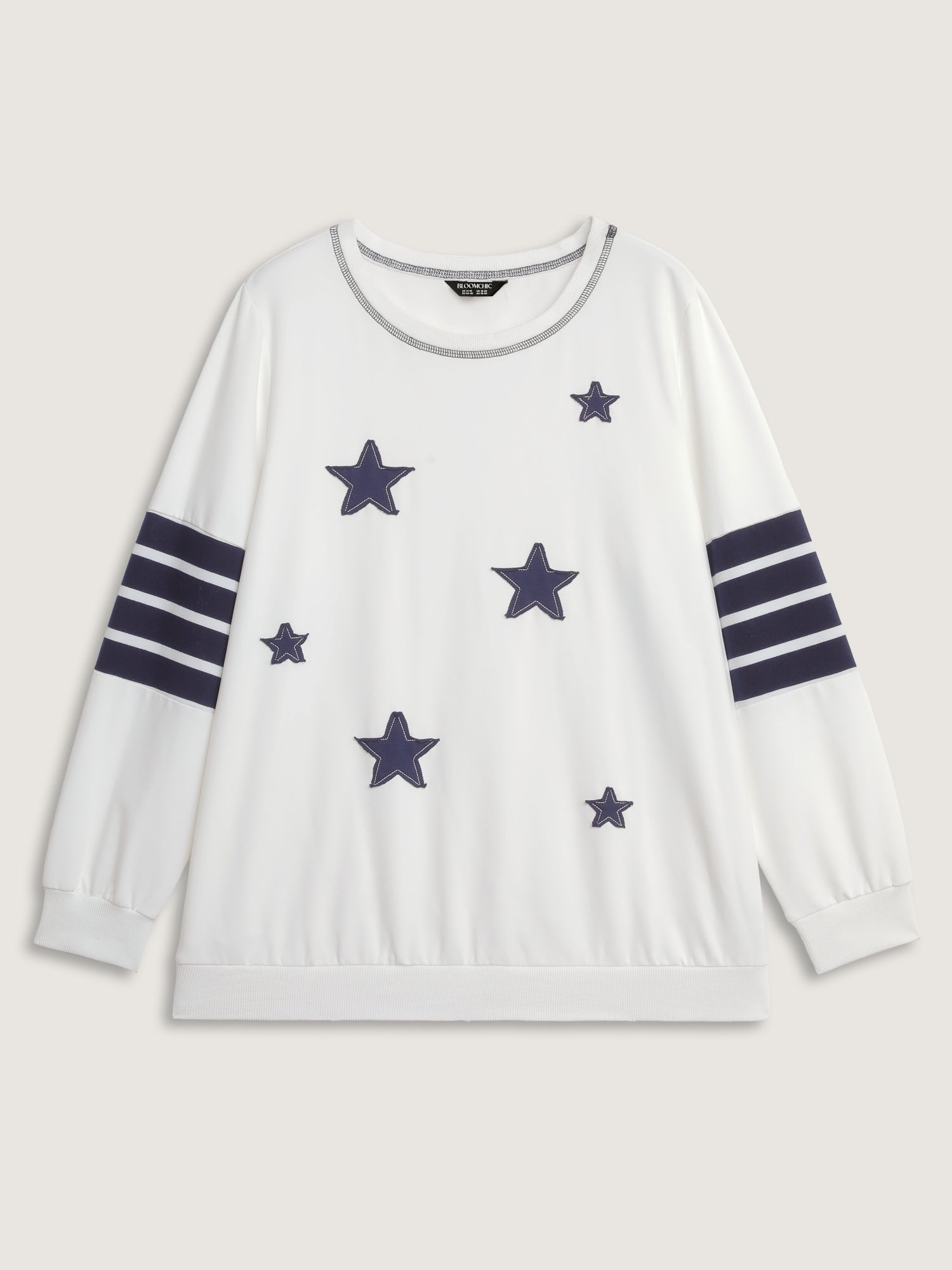 Star-Stripes Applique Stretchy Hem Sweatshirt