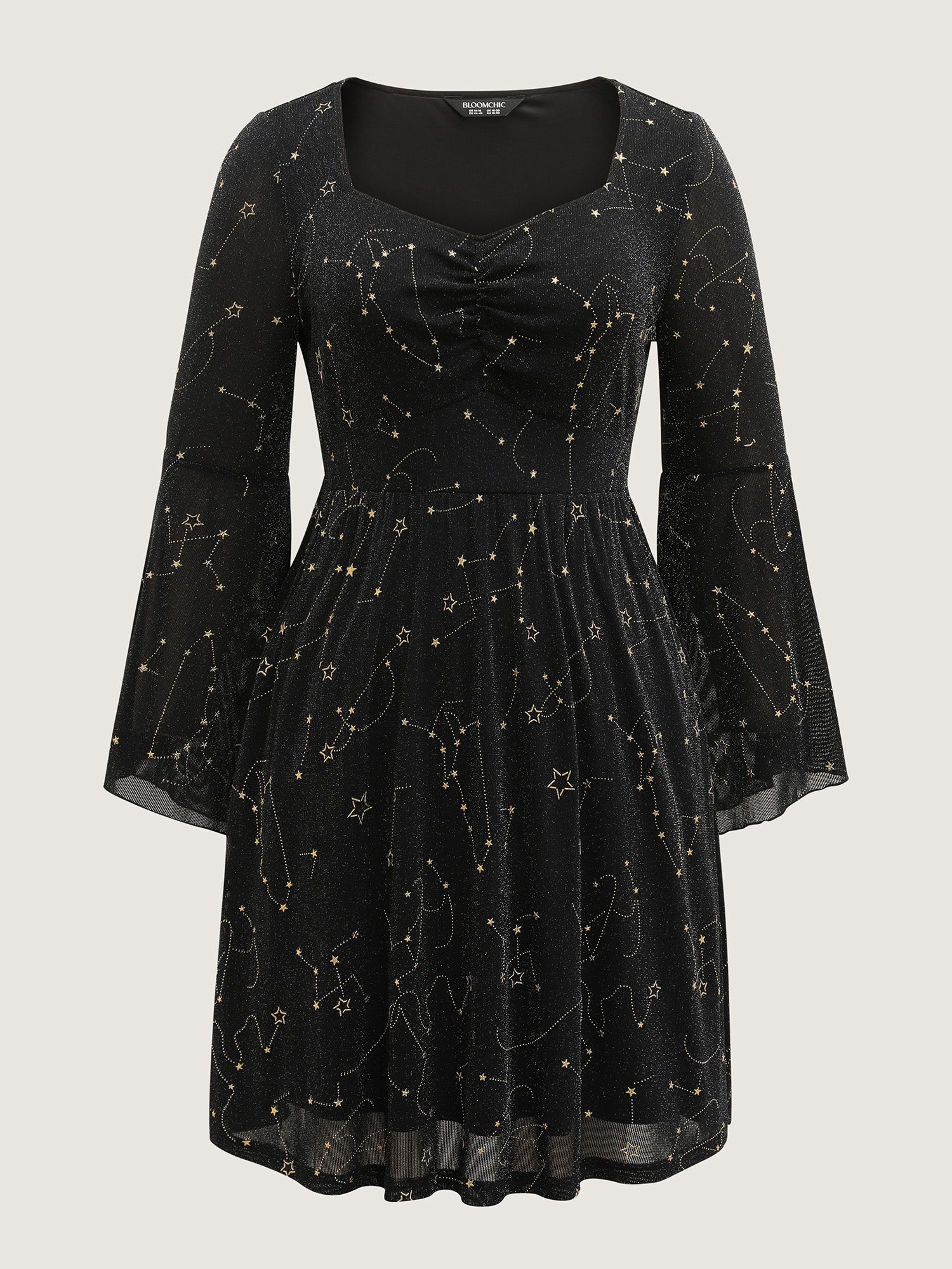Starry Silk Mesh Flared Sleeve Midi Dress